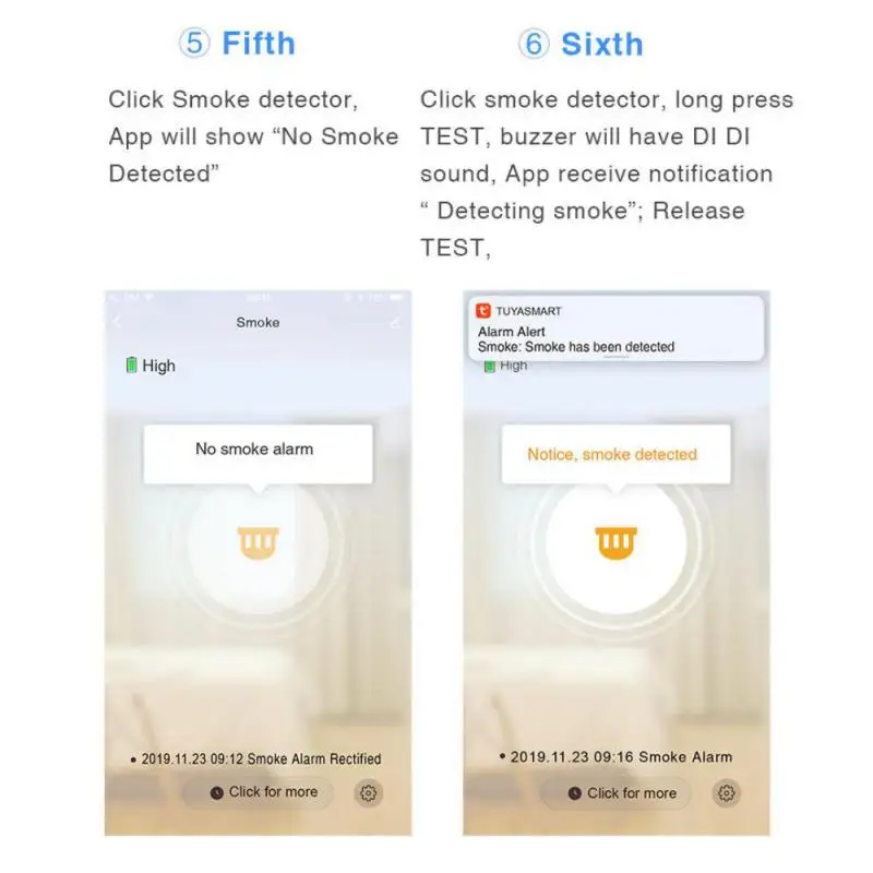 Когда происходит пожар, датчик будет чувствительно обнаруживать дым, отправлять сигнал тревоги, а затем нажимать уведомление на ваш смартфон, чтобы защитить людей и свойства. Эксклюзивный интеллектуальный алгоритм дыма имеет высокую чувствительность, отсутствие ложной тревоги и сильную способность анти-помех.