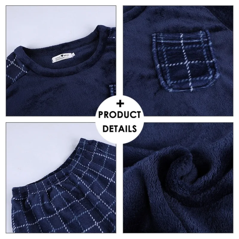 Пижама Мужская теплая, Мужская Фланелевая зимняя плотная Пижама, Му...