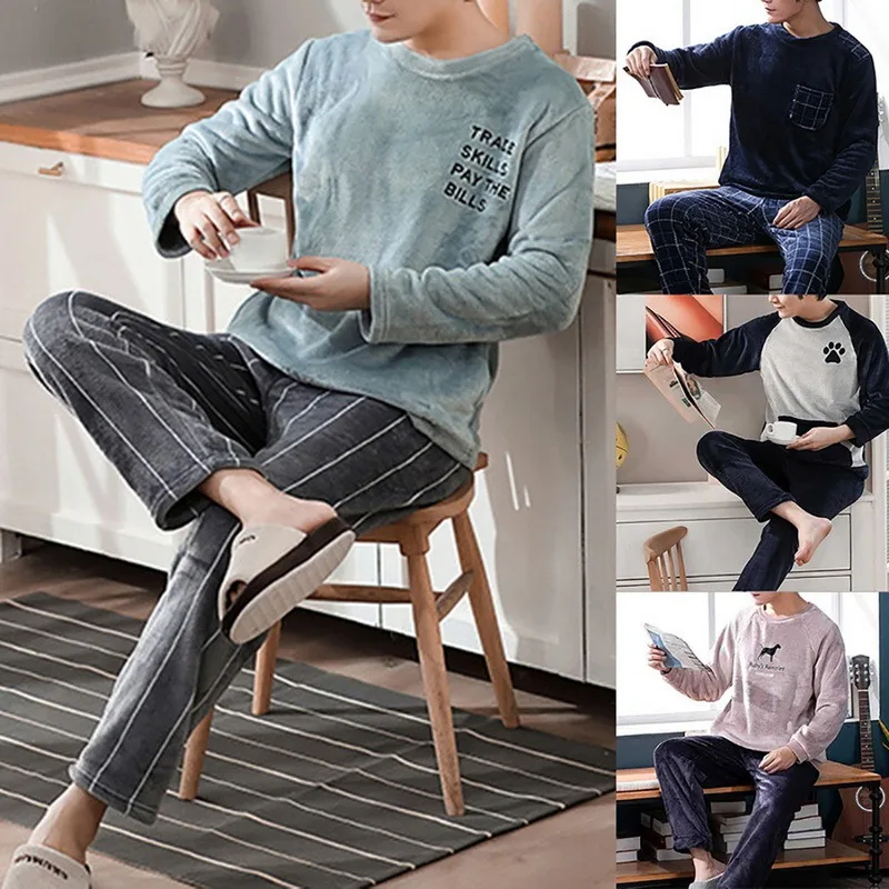 Пижамы, теплая одежда для сна, мужские Фланелевые зимние толстые пи...