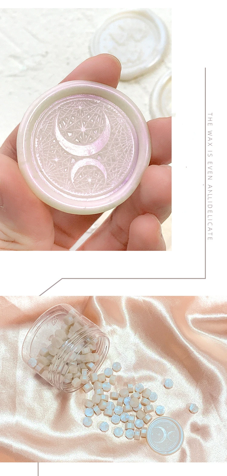 Хороший воск. Переливается красиво. Но гранулы не в баночке, а в пакетике. Доставка за 14 дней.