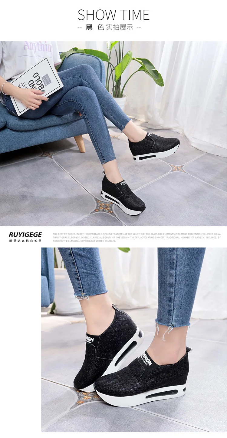 Туфли с блестками; Золотистые и черные кроссовки на танкетке; Женск...