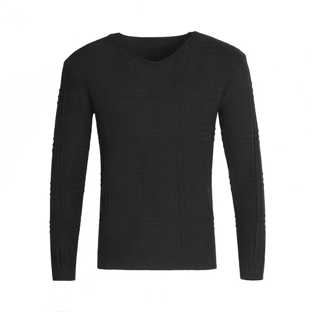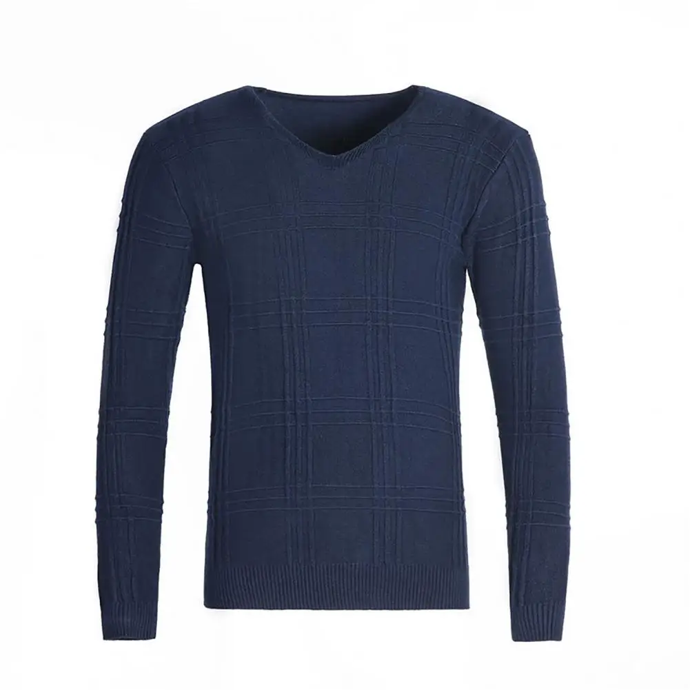 Мужской однотонный свитер с V-образным вырезом, вязаный осенне-зимний свитер, облегающий теплый свитер с длинными рукавами для отдыха, свитер оверсайз