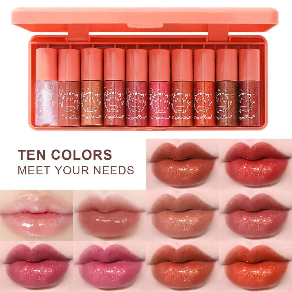 Мини-блеск для губ, 10 цветов, водостойкий, увлажняющий, жидкий