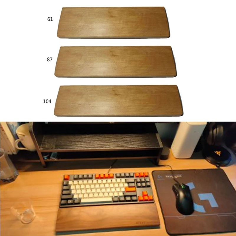 Деревянная Механическая подставка под запястье с клавиатурой из бука и противоскользящим ковриком, эргономичная настольная подставка под запястье с поддержкой 61 87 104 клавиш