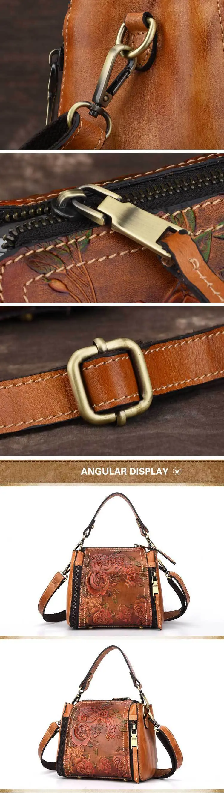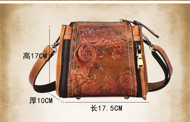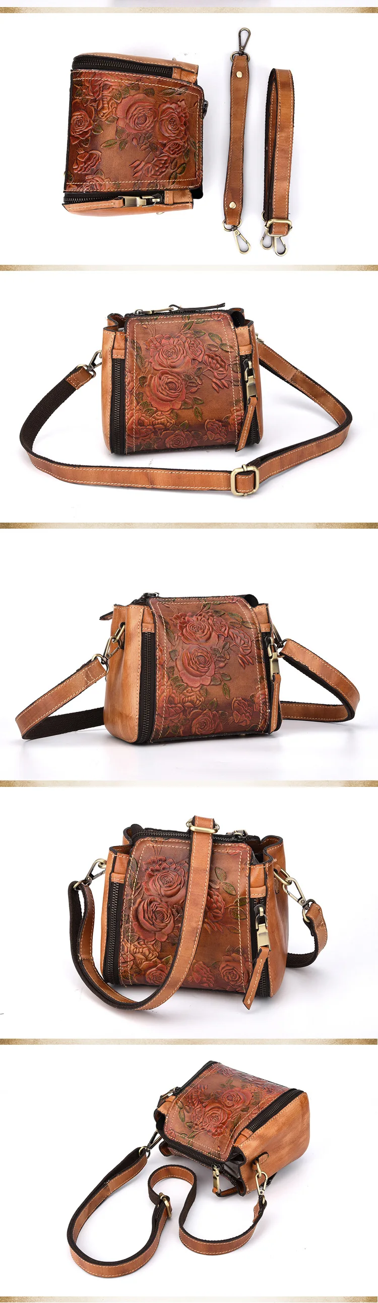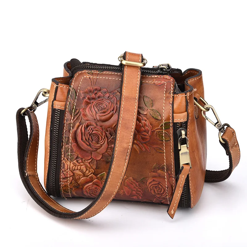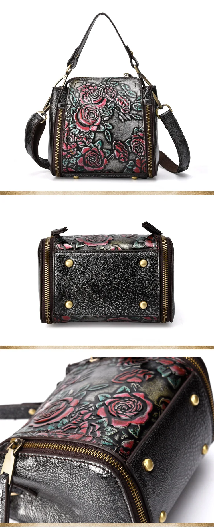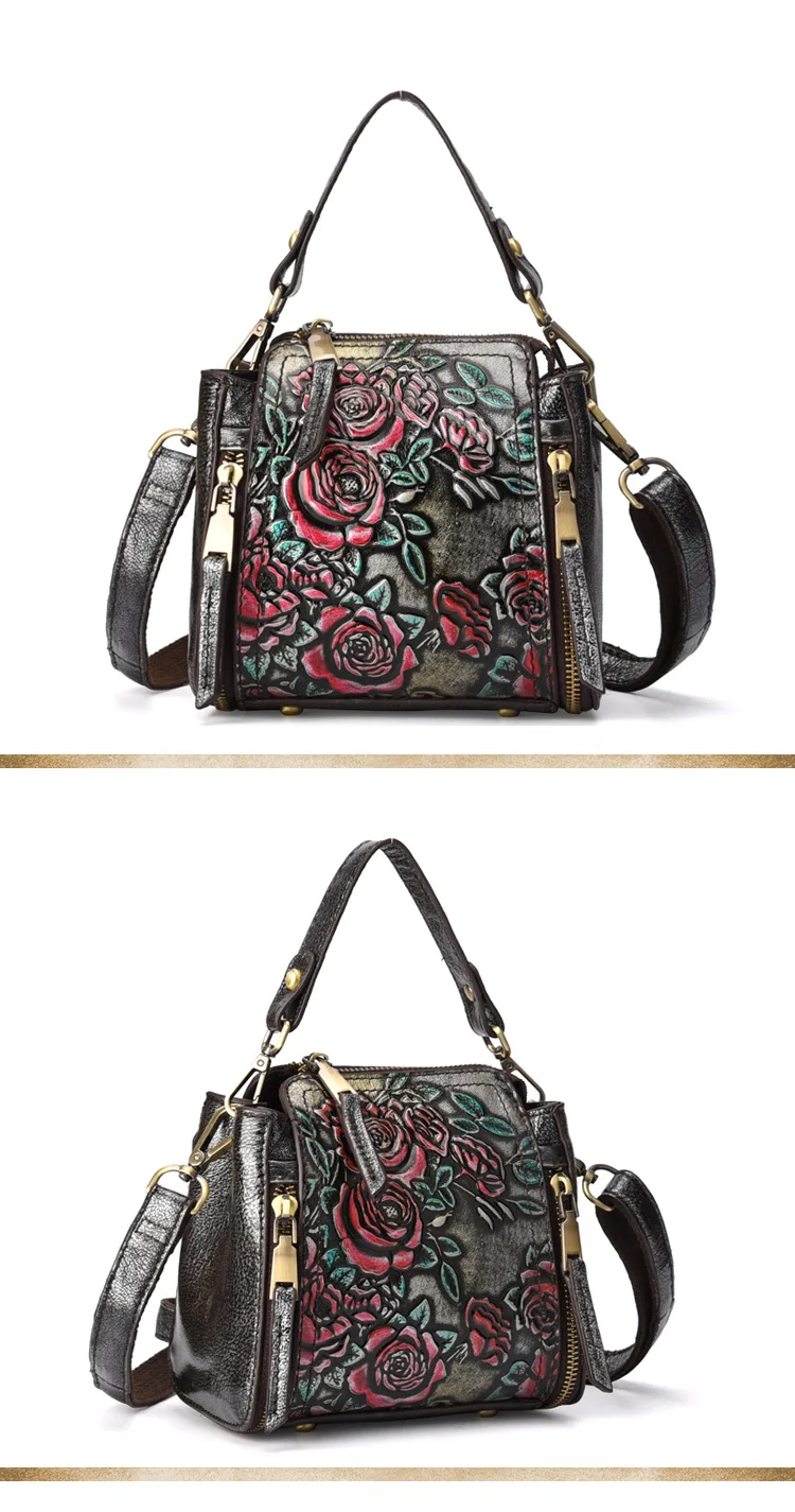 Роскошная женская сумка-мессенджер на плечо, дамские винтажные сумочки из натуральной воловьей кожи в стиле ретро, чемоданчик с ручным тиснением и цветком