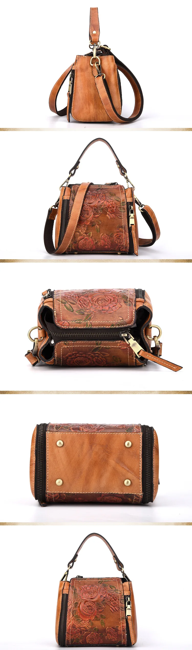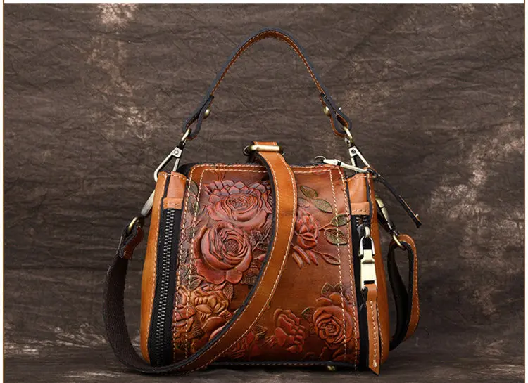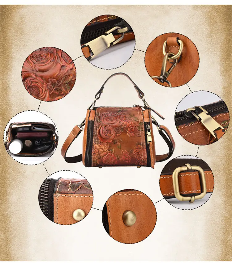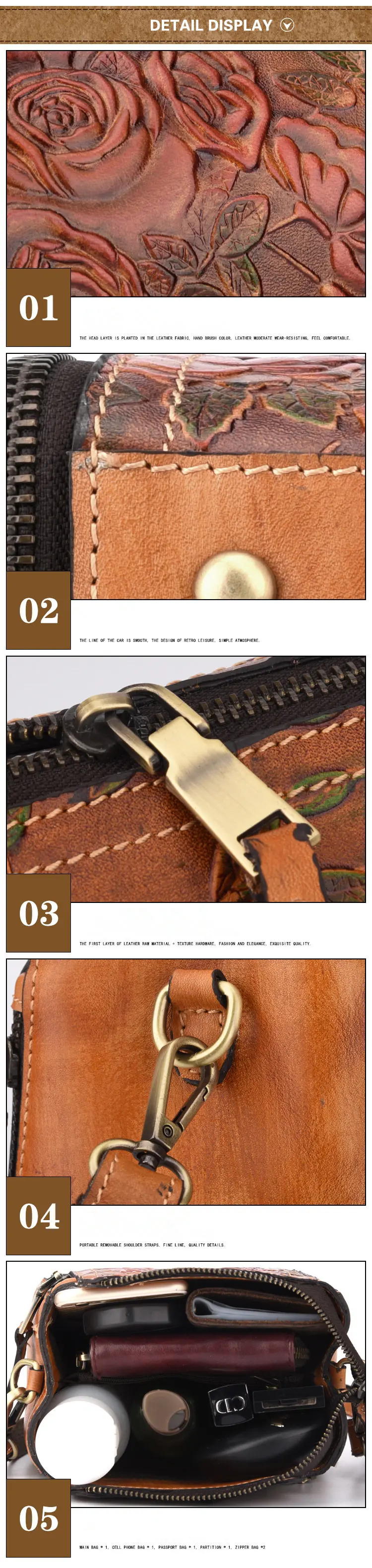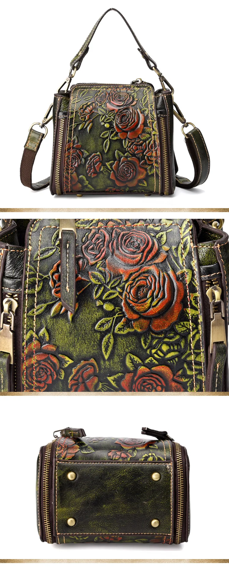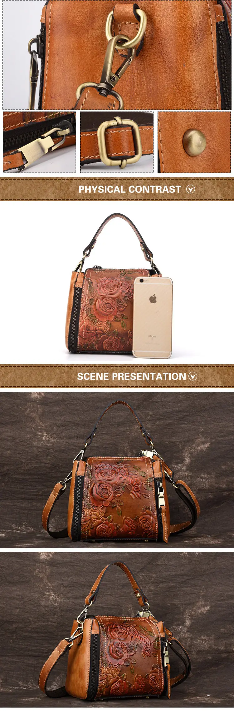 Роскошная женская сумка-мессенджер на плечо, дамские винтажные сумочки из натуральной воловьей кожи в стиле ретро, чемоданчик с ручным тиснением и цветком