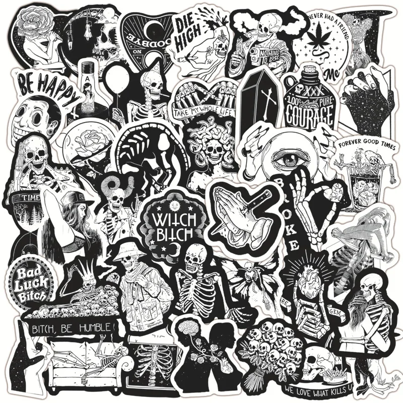 103050 шт серии ужасов Черный и белый череп граффити наклейки ноутб...