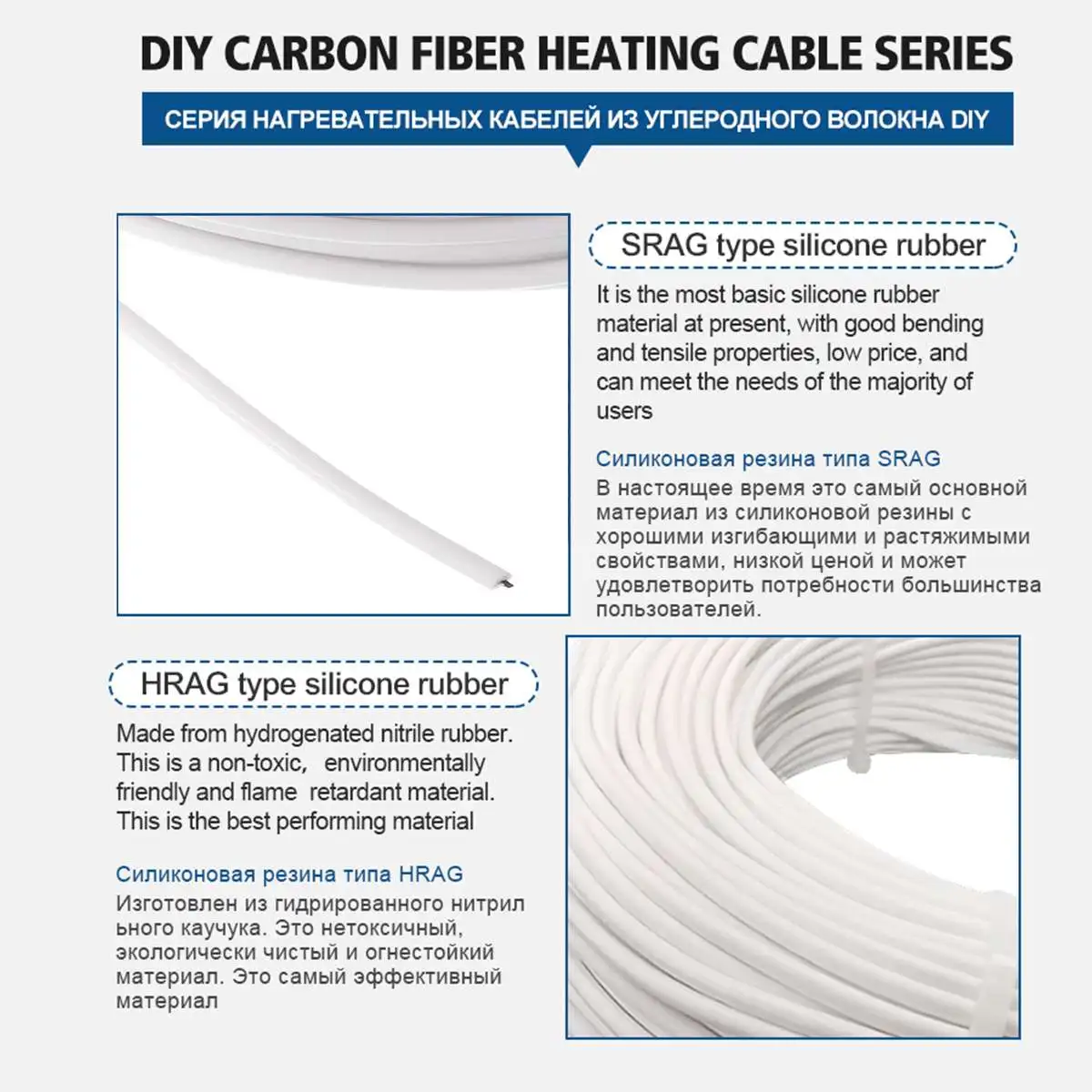 Нагревательный кабель из углеродного волокна, белый, нетоксичный и ...