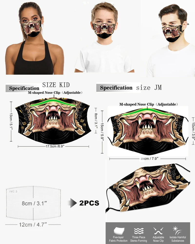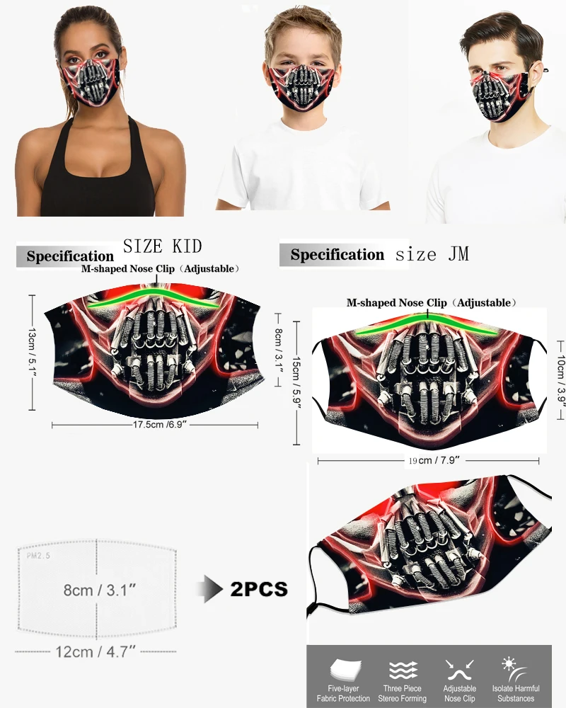 Цельная модная Рождественская маска для косплея для взрослых, маска с ужасным ролевым рисунком, многоразовая детская маска для лица PM2.5, Пылезащитная маска