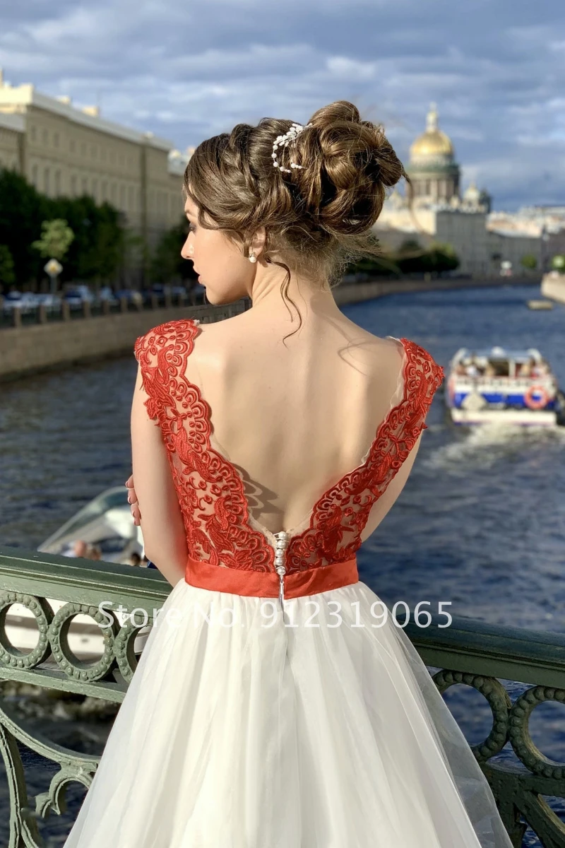 Красно-белое винтажное свадебное платье, кружевное свадебное платье для гостей, роскошное Тюлевое свадебное платье принцессы с передним разрезом