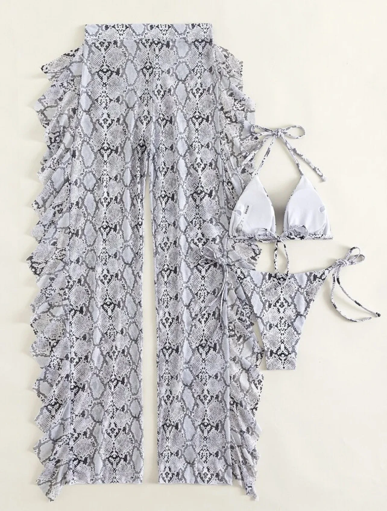 Бикини женское с принтом змеиной кожи, пикантный открытый бандажный...