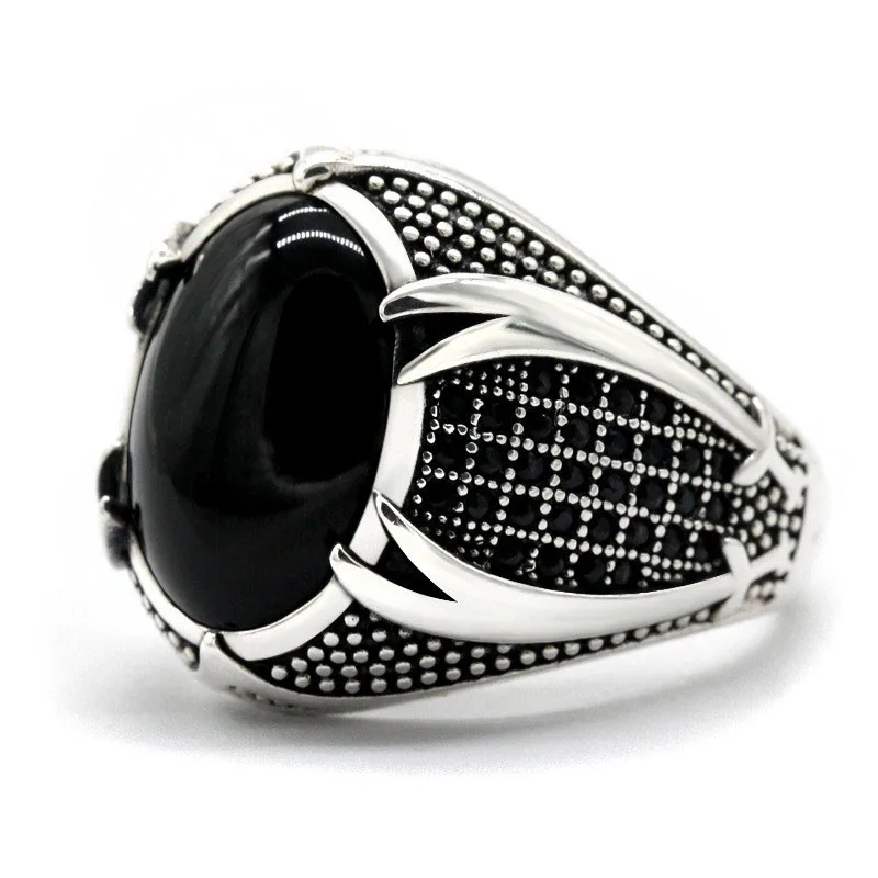 Мусульманское кольцо из серебра 925 пробы с натуральным белым агато...