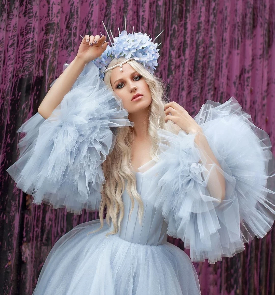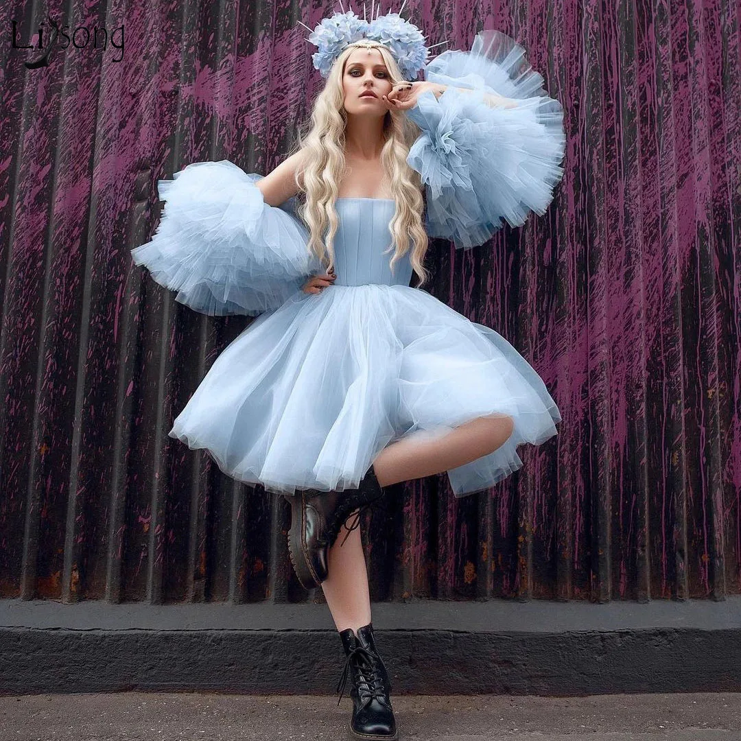 Короткое платье для выпускного вечера из тюля небесно-голубого цвета со съемными рукавами, платья для вечеринки на день рождения для милой девушки, платье без бретелек с пышными рукавами для встречи выпускников