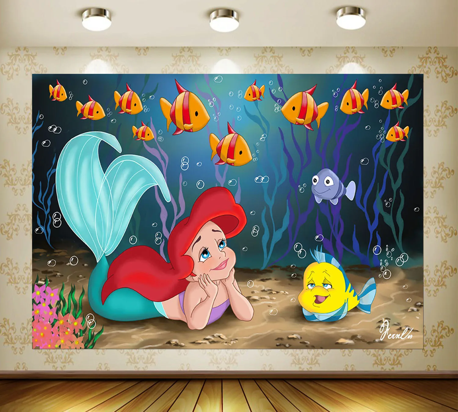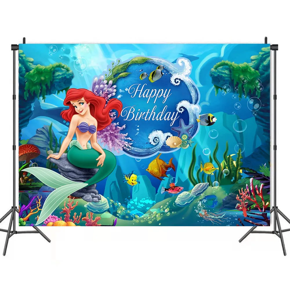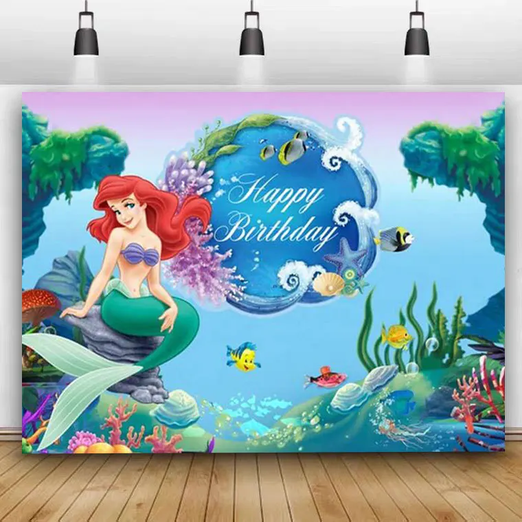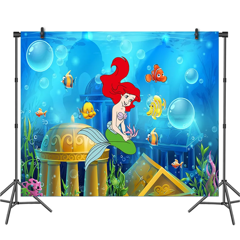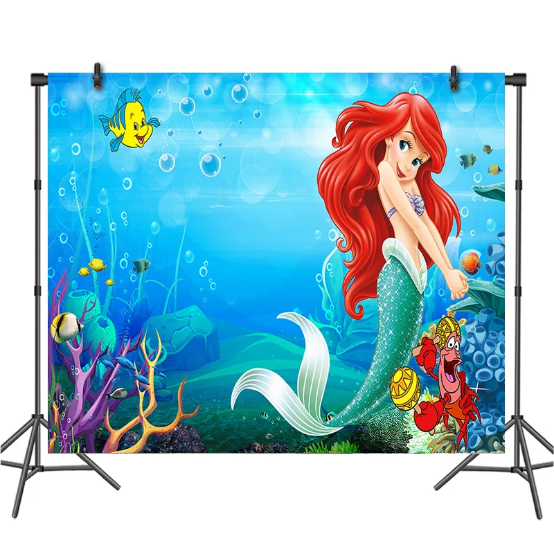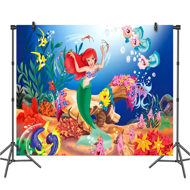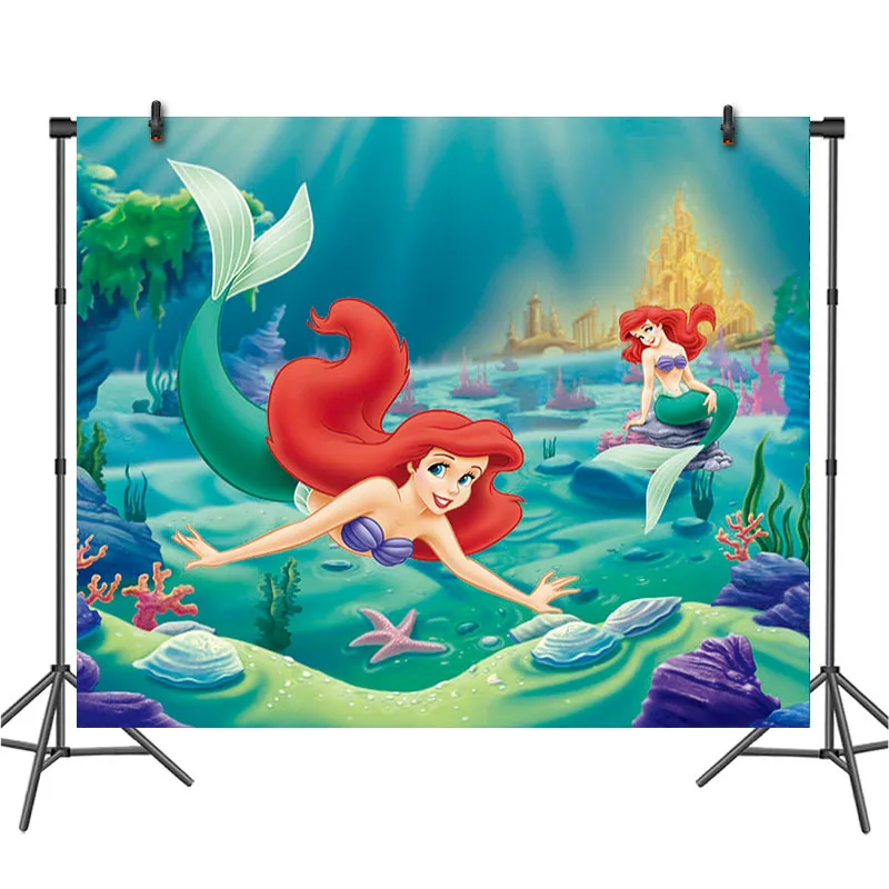 Виниловый фон для фотосъемки с изображением русалки принцессы Ариэль на заказ