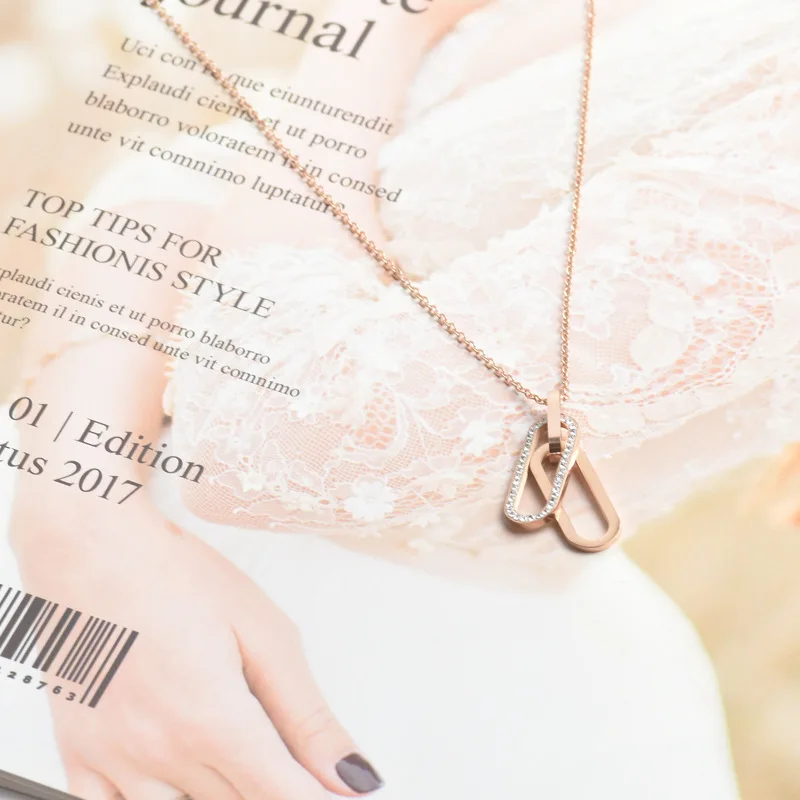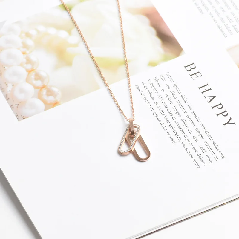 Ожерелье женское модное двойное длинное кольцо розовое золото цепочка до ключиц простое и универсальное ювелирное изделие из титановой стали для девочек