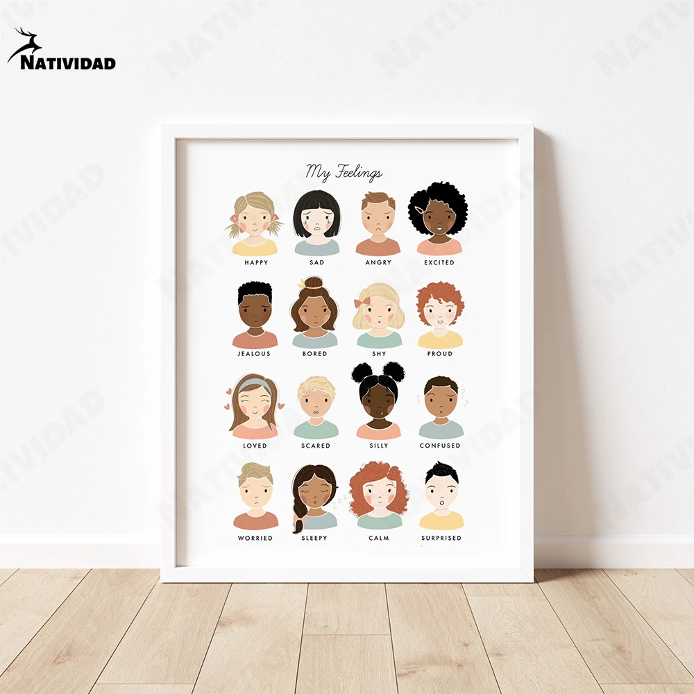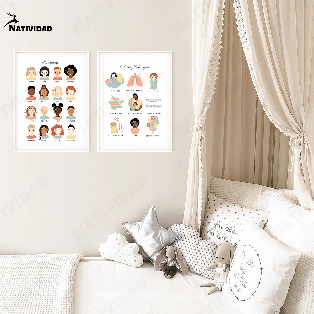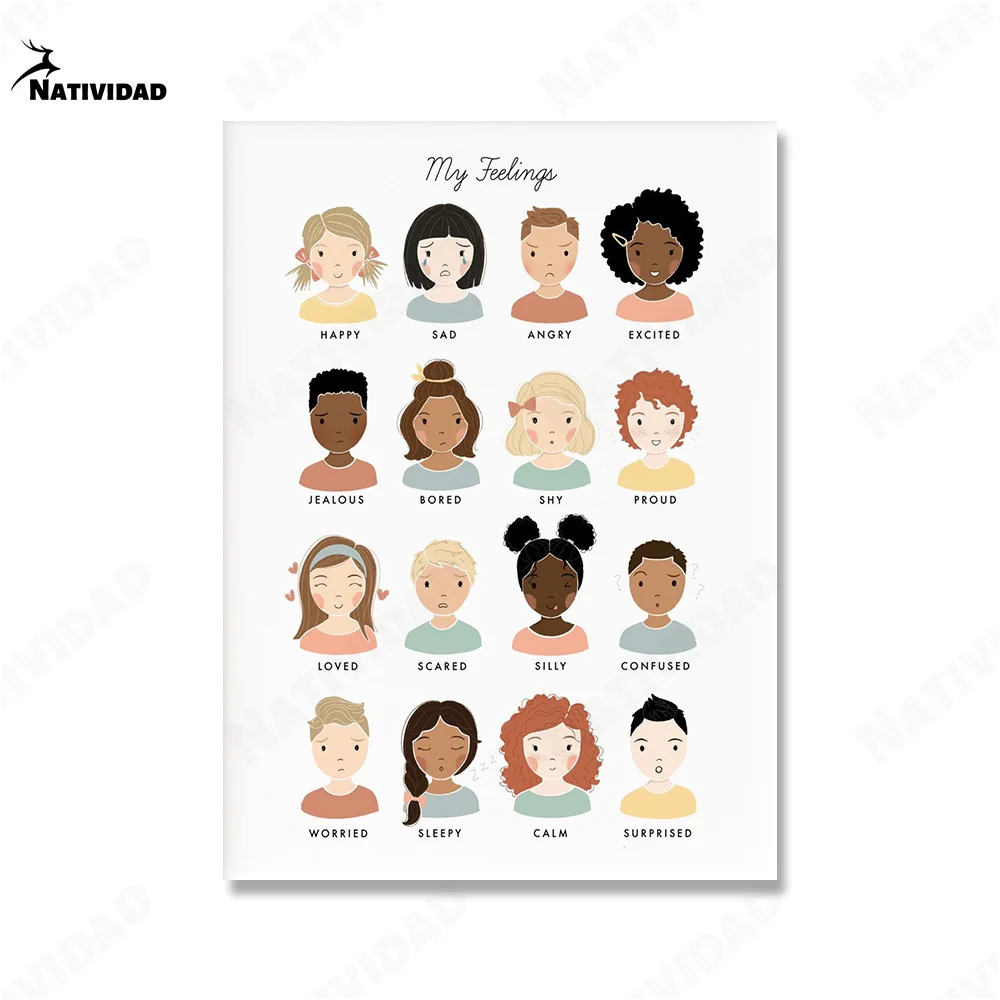 Тихая техника, иллюстрация, постеры и печать, схема моих чувств, настенное искусство, Картина на холсте для детского сада