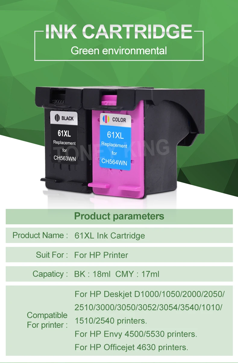 Чернильный картридж Toney King 61XL для HP 61 61 XL, картриджи HP 61XL для HP 1000 1010 1050 1510 2000 2050 2510 3000 3050 Envy 4500