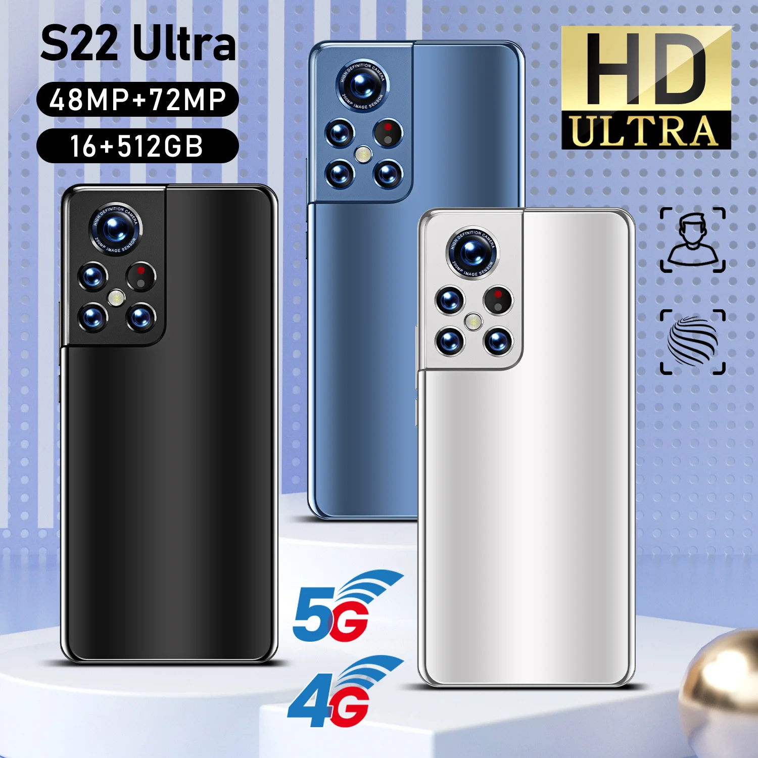Новый смартфон S22 Ultra, 6,7 дюйма, 16 ГБ + 512 ГБ, телефон Androi...