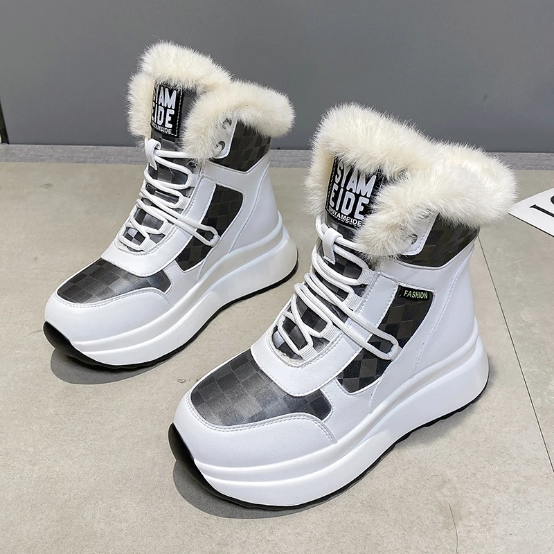 Женские кроссовки на платформе, повседневные теплые кроссовки на ме...
