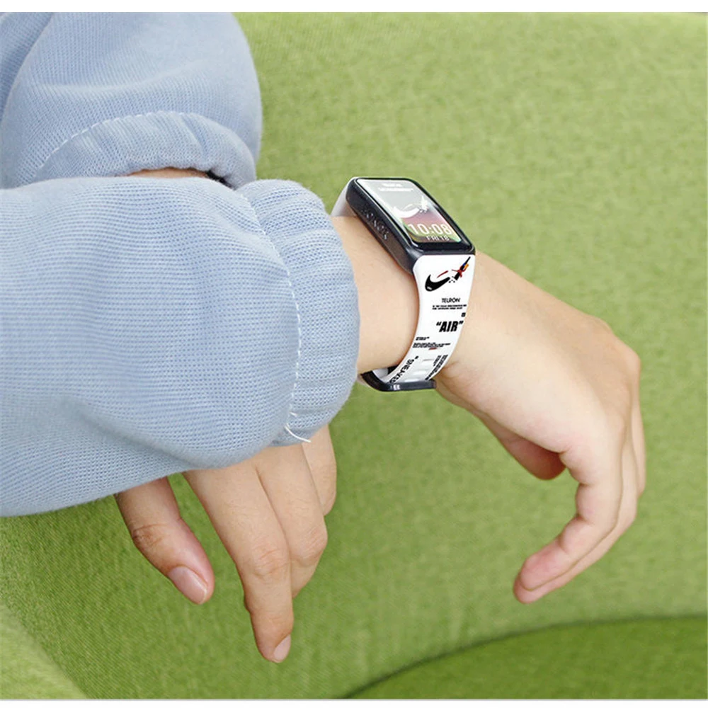 Силиконовый ремешок с принтом для Huawei Band 6Honor Band 6, аксессуары для смарт-браслета
