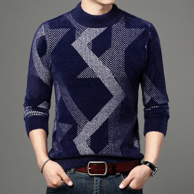 Мужской шерстяной свитер с геометрическим принтом, Теплый Мягкий трикотажный джемпер, модель Y467, Осень-зима
