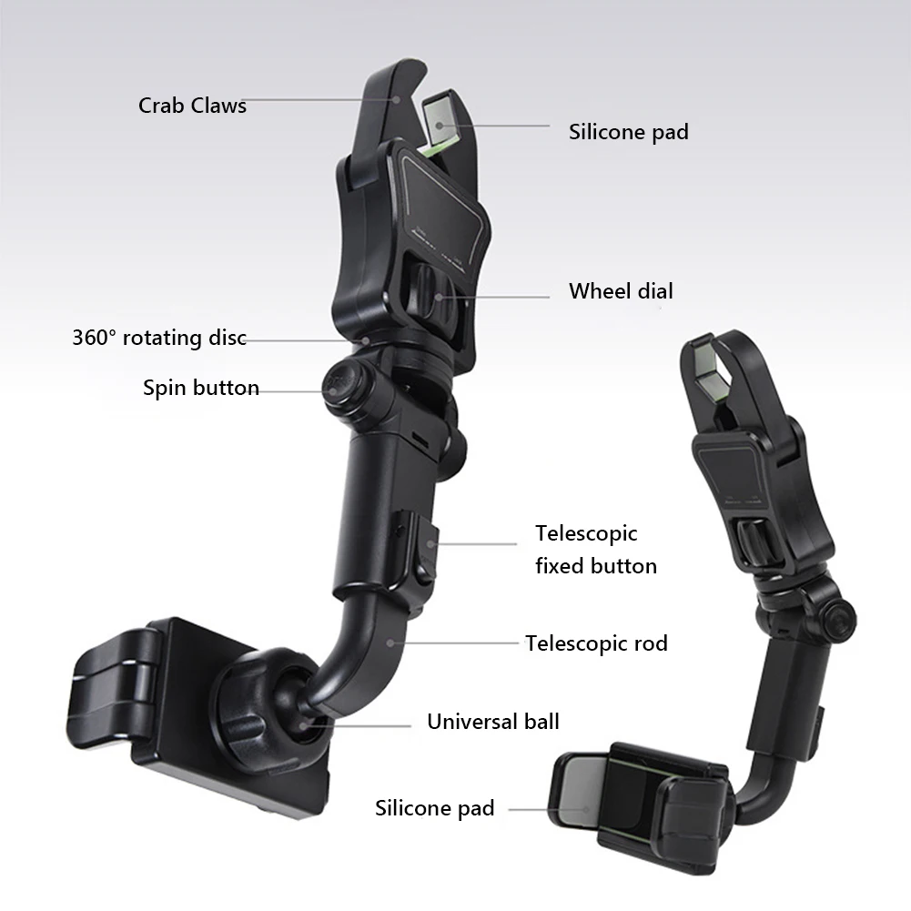Телескопическое Автомобильное зеркало заднего вида держатель для телефона скрытый Краб зажим Кронштейн поворотное авто сиденье смартфон Поддержка аксессуарХарактеристика:1. Он может вращаться на 900 °, чтобы дать вам удовлетворительный угол для удовлетворения потребностей различных линий зрения.2. 360 ° поддерживает горизонтальное и вертикальное переключение экрана, а угол навигации можно регулировать по желанию, чтобы вы могли лучше спланировать маршрут и привод.3. Большой размер и зажим; Большое расстояние зажима. 58-90 мм Регулируемая ширина, подходит для большинства мобильных телефонов на рынке; 14-30 мм ширина зажима, зажим везде, где вы хотите, супер гибкий4. Супер стабильный. Пряжка оснащена прочной пружиной. Мобильные телефоны с несколькими размерами экрана не могут быть отброшены5. Легко установить. Второе поколение новых крабовых плоскогубцев, Быстрая блокировка. Экономьте время и усилия6. Одна кнопка телескопическая, простота в эксплуатации. Аккуратно нажмите кнопку разблокировки, чтобы мгновенно расширить поддержку7. Скрытый дизайн. При использовании просто Вытяните кронштейн из зеркала заднего вида; Если вам это не нужно, вы можете аккуратно нажать, чтобы спрятать кронштейн за зеркалом заднего вида, не нарушая вашу линию зрения и обеспечивая безопасность вождения.8. Применимо к нескольким функциям и сценариям. Многофункциональный мобильный телефон с широким спектром применений может использоваться в автомобильных зеркалах заднего вида, автомобильных подушках, кухнях, ресторанах, спальнях и даже в онлайн-классах студентов. Короче говоря, его можно использовать там, где он может быть зажат.Спецификация:Цвет изделия: серый, зеленый (по желанию)Материал изделия: АБС-пластик, силиконСценарий применения: автомобиль, домХарактер продукта: второе поколение нового дизайна bionic engineering-зажим для крабаИспользование: зеркало заднего вида, рабочий стол, книжная полка и спинка стулаОбласть применения: Автомобильное Зеркало, Автомобильная подушка, кухня, столовая, спальняРазмер продукта: 200*26 мм/7.9x1inВес изделия: 112 гУпаковка продукта: цветная коробкаРазмер цветной коробки: 120x108x4 8 мм/4.7x4.3x1.9inВес одного брутто: 138 гШаги установки:1. Снимите защитную пленку2. Отпустите циферблат3. Зажим в зеркале рычаг4. Блокировка циферблата5. Отпустите зажим и Установите мобильный телефон6. Отрегулируйте соответствующий уголПримечание:В связи с различиями мониторов и эффектами освещения реальный цвет товара может немного отличаться от цвета на фотографиях. Спасибо!Возможны отклонения в 1-2 см вследствие измерений вручную.