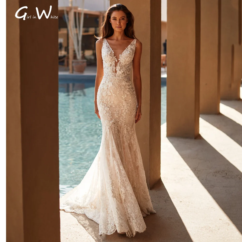 Женское свадебное платье It's yiiya, белое кружевное платье с открытой спиной и V-образным вырезом на лето