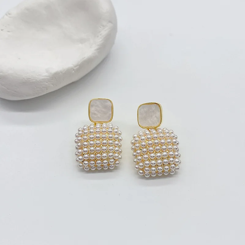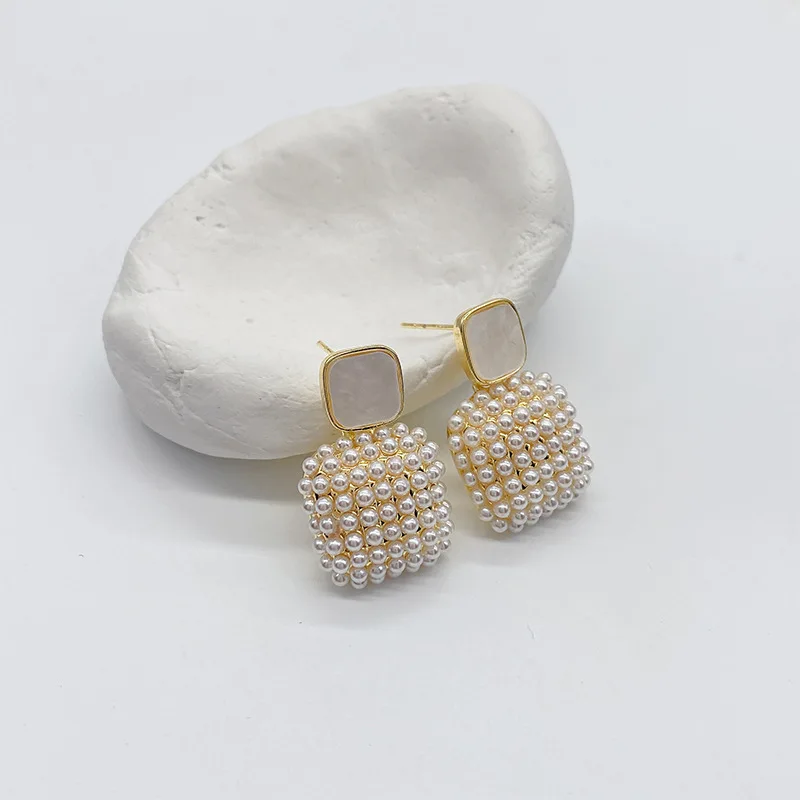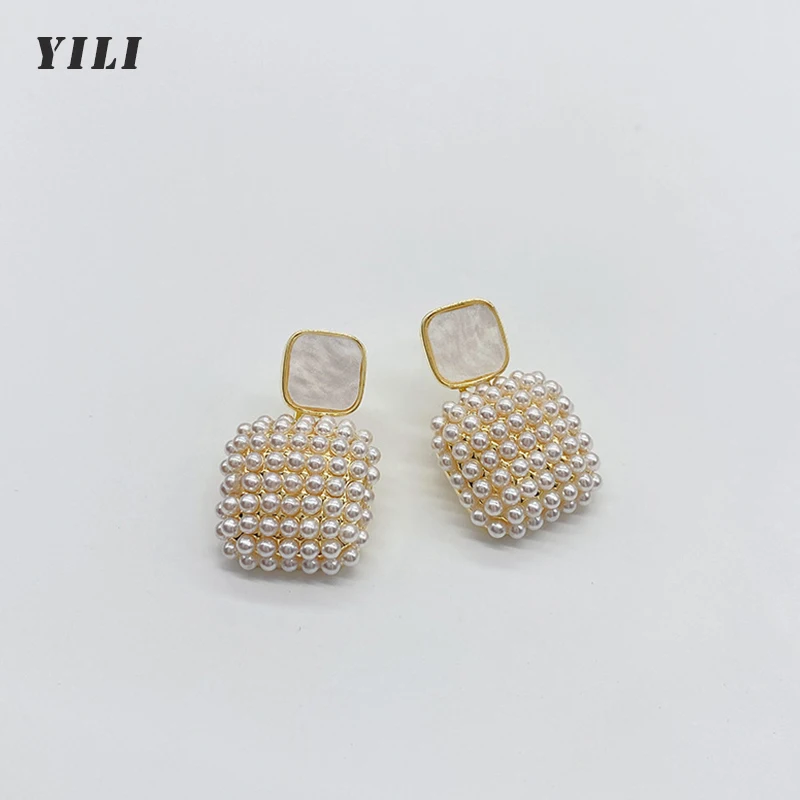 2021 новые корейские квадратные жемчужные серьги высокого качества для женщин, модные серьги-капли с рисовым жемчугом для девочек, сексуальные элегантные ювелирные изделия