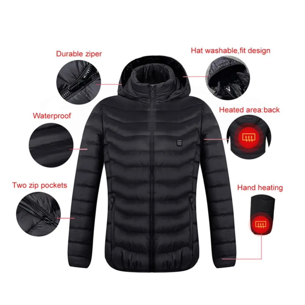 Мужские и женские куртки с подогревом, уличная жилетка, пальто с USB электрической батареей, с длинными рукавами, куртки с капюшоном, теплая зимняя теплая одежда для катания на лыжах (внешний аккумулятор не входит в комплект)