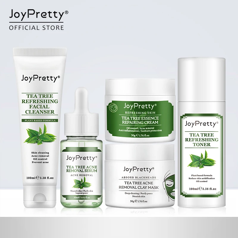 Набор из 5 предметов JoyPretty, экстракт чайного дерева, набор для ухода за кожей лица, удаление акне, улучшение пор, крем для лица, очищающее средство, корейская косметика