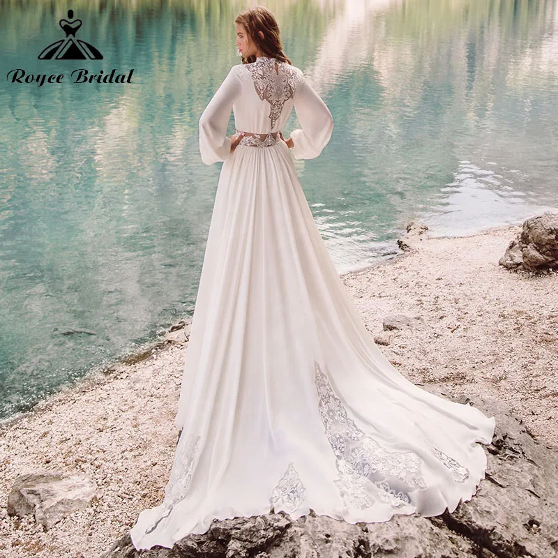 2022 Robe кружевной лиф Бохо шифоновые Свадебные платья с глубоким ...