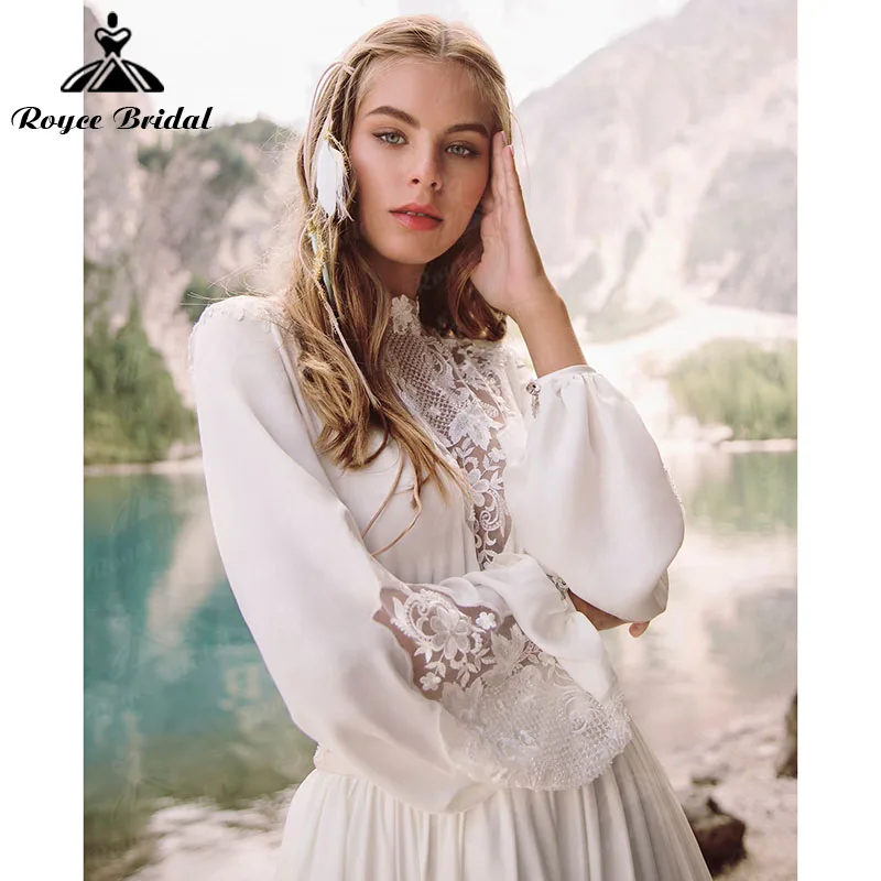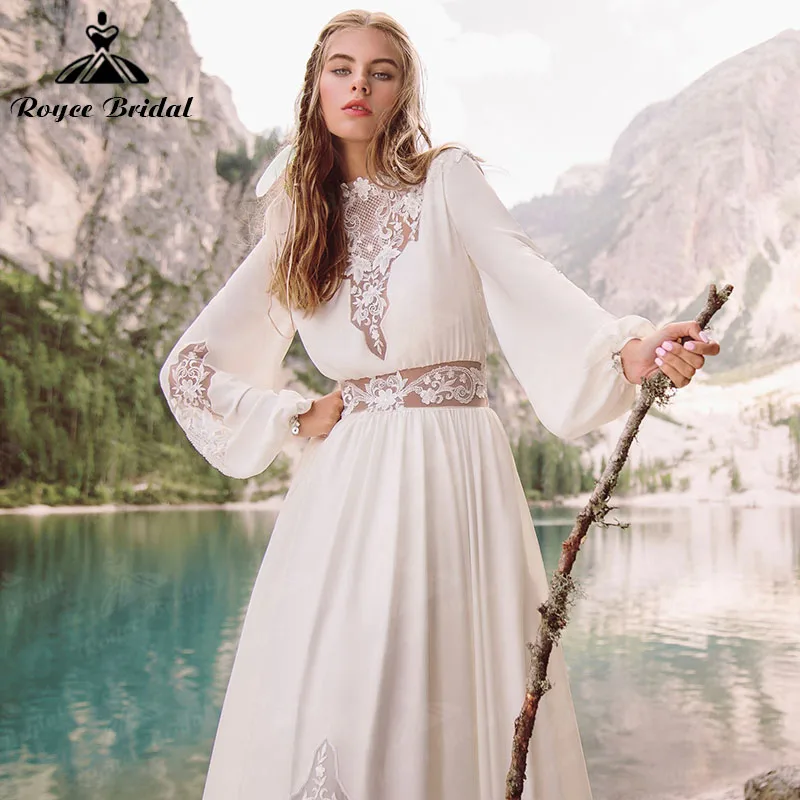 Винтажное богемное свадебное платье А-силуэта с длинным рукавом
