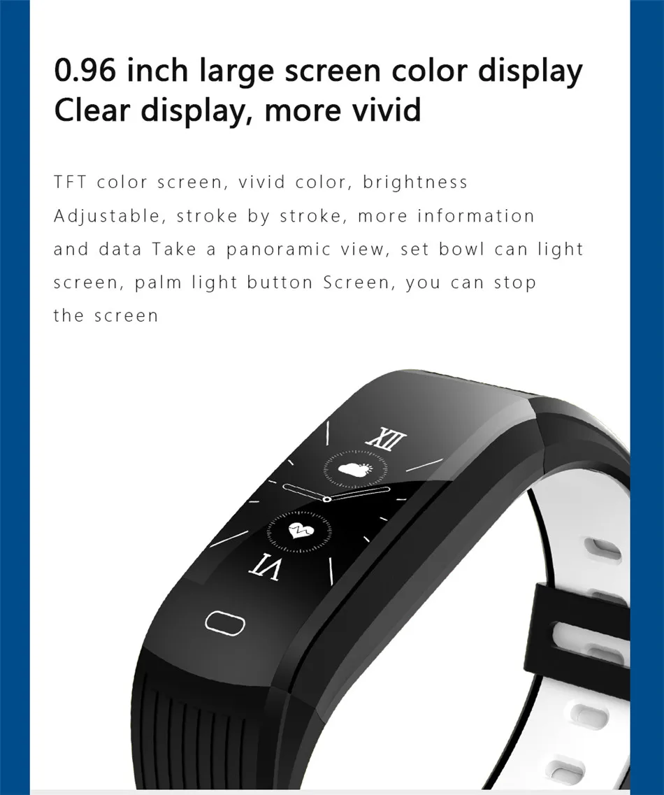 Функция наручных часов1. Поддержка Bluetooth 4,0, Android , IOS2. Коснитесь экрана, чтобы контролировать наручные часы3. Шаги, калории, расстояние: при упражнениях он может записывать количество шагов, сожженные калории, траекторию бега и расстояние до места назначения.4. Монитор сердечного ритма: он будет контролировать и записывать ваш пульс.5. Монитор артериального давления: он будет контролировать и записывать ваше кровяное давление.6. Монитор сна: во время сна, он может контролировать время и качество сна.7. Напоминание о сидячем положении: Установите время напоминания о сидячем положении, оно будет вибрировать, чтобы напомнить вам об отдыхе.8. Будильник9. Дистанционное управление фотографией: в пределах 10 метров, вы можете встряхнуть его, чтобы управлять телефоном, чтобы делать фотографии.10. Напоминание о сообщениях и звонках: когда телефон получает звонок или сообщение, он будет вибрировать, чтобы напомнить вам.11. 5 дней в режиме ожидания.12. Управление музыкойПосылкаБраслет X 1Руководство пользователя X 1Коробка X 1 Водонепроницаемая СпецификацияВы можете мыть руки и лицо при носке.Но это не поддерживает купание, плавание, дайвинг.Примечание:1. Носимые устройства отслеживают деятельность человека с помощью электронных датчиков, и они находятся на потребительском уровне. Это нормально для определенных отклонений. Пользователь должен рассматривать данные объективно.2. Пожалуйста, не сравнивайте с больничным оборудованием для чтения, это не медицинское устройство!