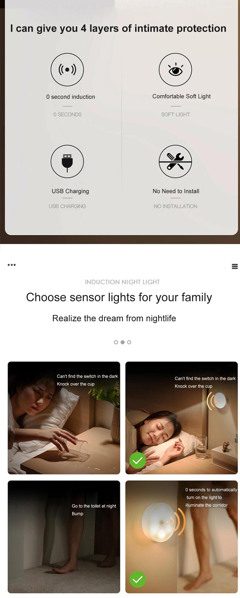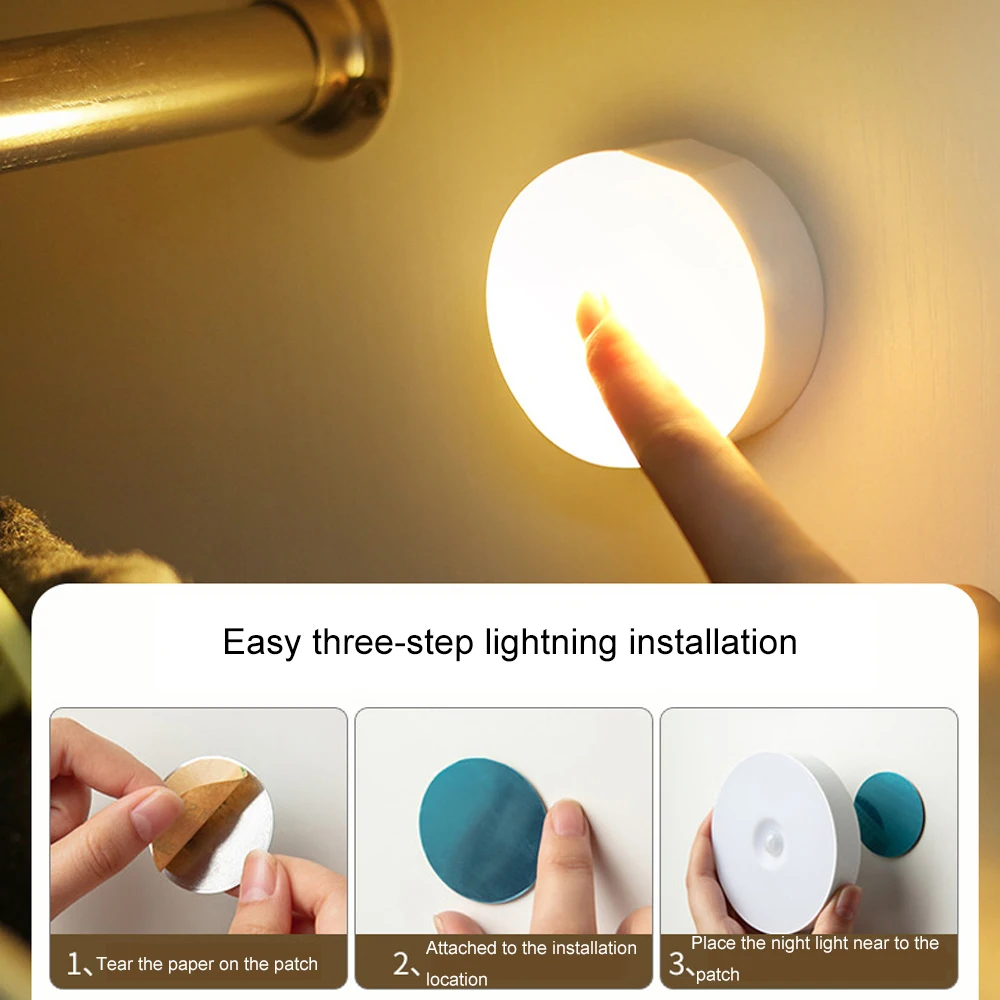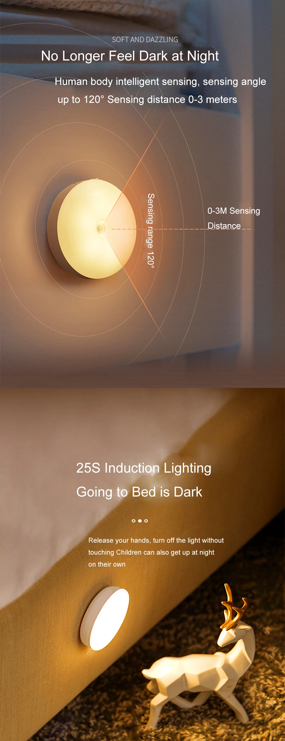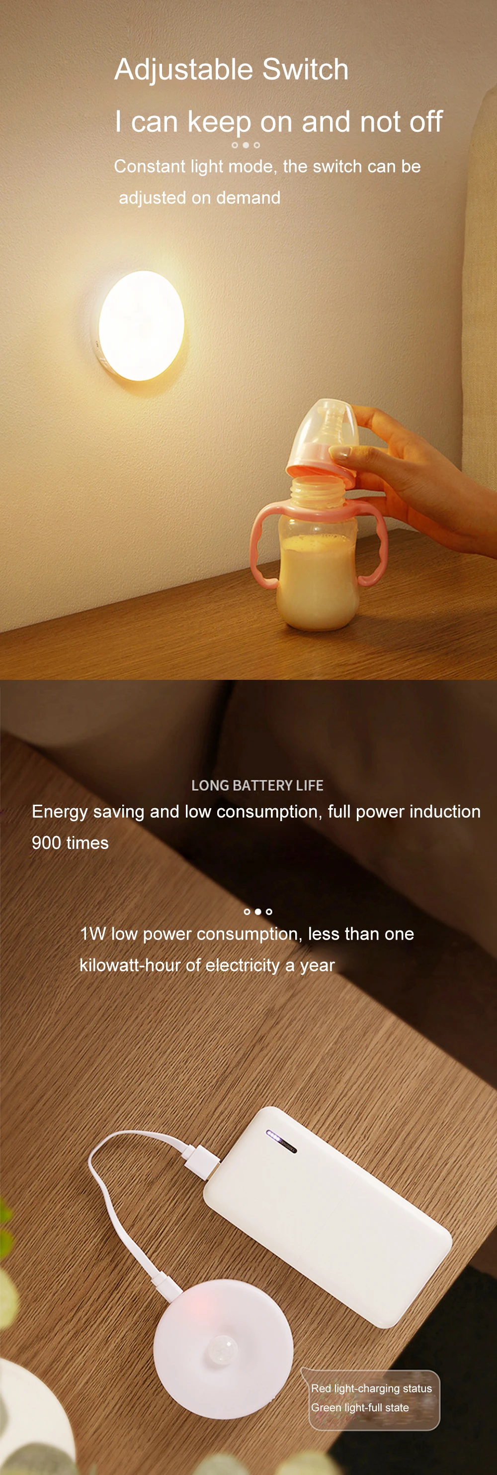 Светодиодный индукционный ночник 1 Вт, перезаряжаемый прикроватный светильник для гостиной, спальни, общежития, коридора, магнитная адсорбционная лампа для сна