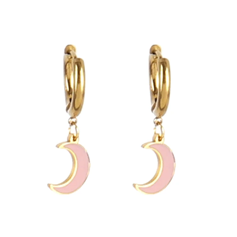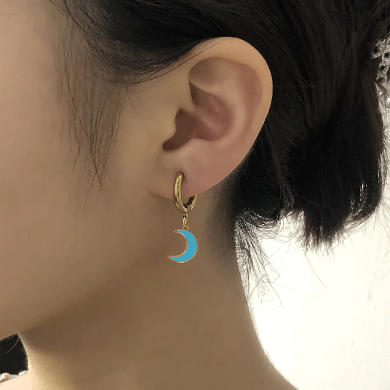 Цветные серьги-кольца из нержавеющей стали, серьги-подвески в виде Луны, эмалированные серьги в виде Луны из эпоксидной смолы, Подвесные серьги для женщин, серьги, ювелирные изделия