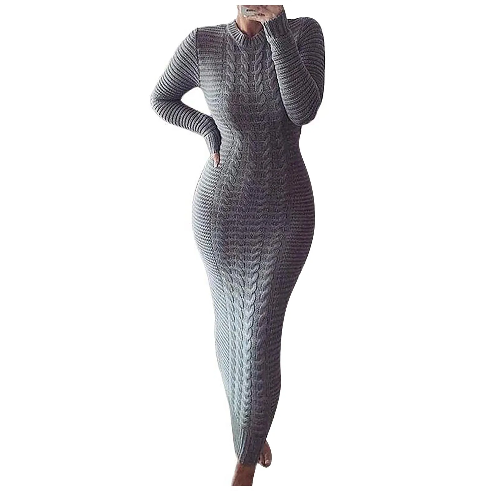 Женское осенне-зимнее платье-свитер, сверхдлинное однотонное платье...