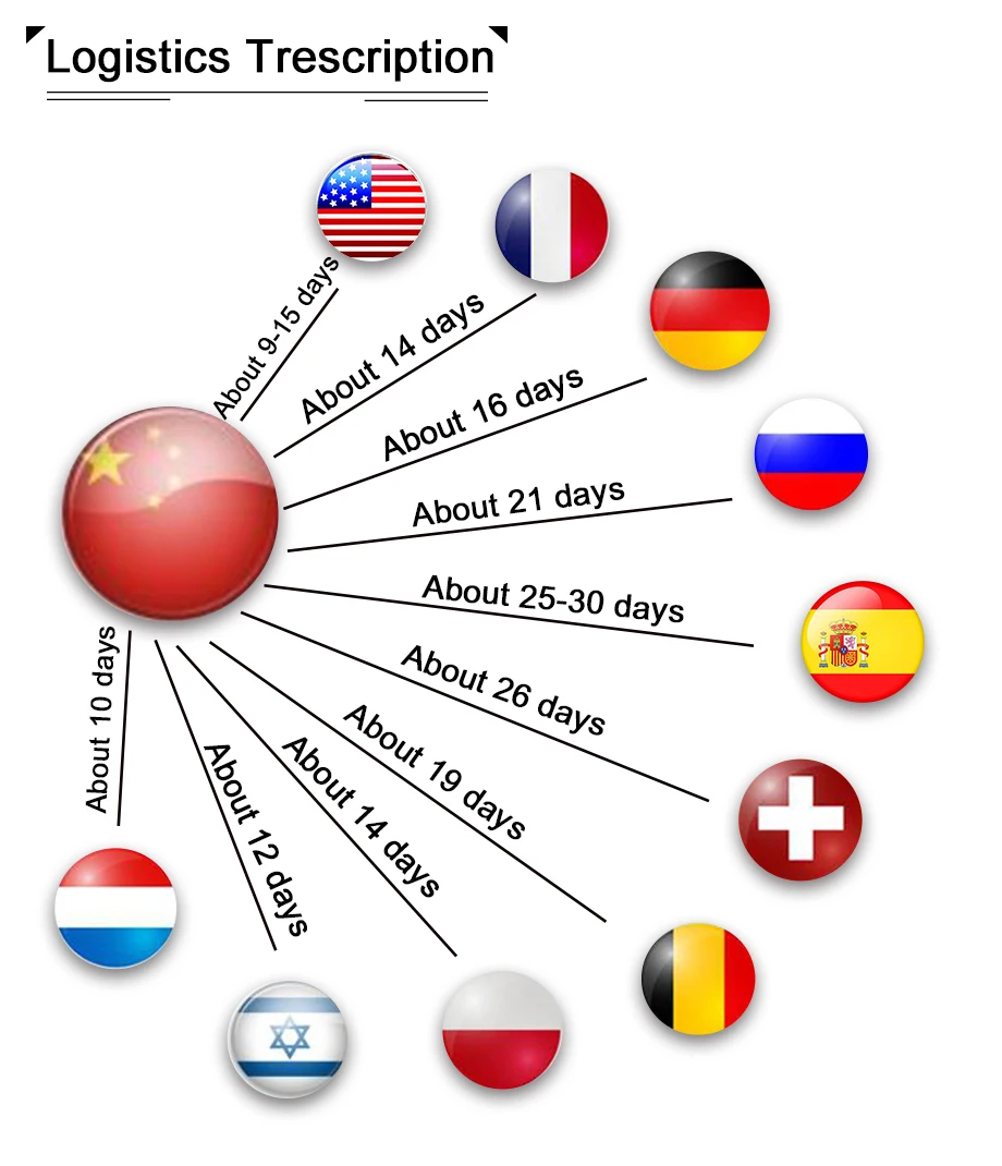 1. Обычно заказ будет отправлен в течение 24 часов 2. Товары будут отправлены заказной авиапочтой Почта Китая и Aliexpress и E-packet 3. Ожидаемая дата доставки будет зависеть от таможни, погоды и т. Д., также, пожалуйста, свяжитесь со мной, чтобы продлить время защиты вашего заказа