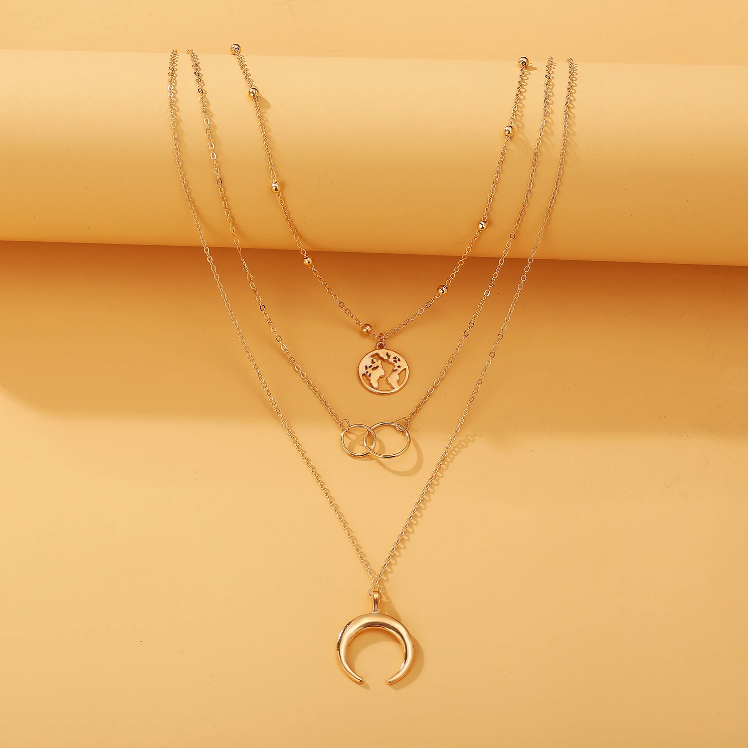 Винтажное многослойное колье с двуцветной подвеской для женщин Золо...