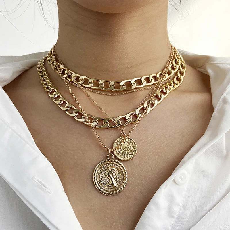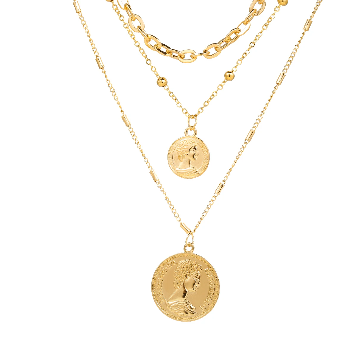 SUJI кубинский многослойный массивный толстый чокер Цепи Ожерелья Панк Золотая монета с портретом Подвеска Ожерелье для женщин готические ювелирные изделия