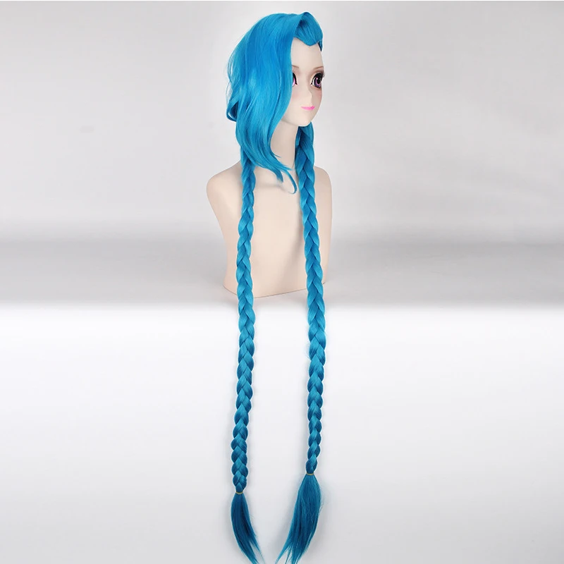 120 см46,8 дюйма, искусственный парик LOL, голубые косы Jinx, парик...