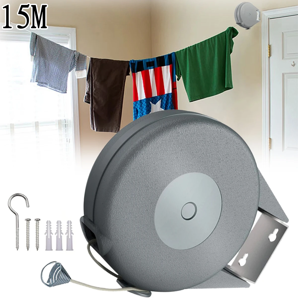 Выдвижная веревка для одежды, 15 м