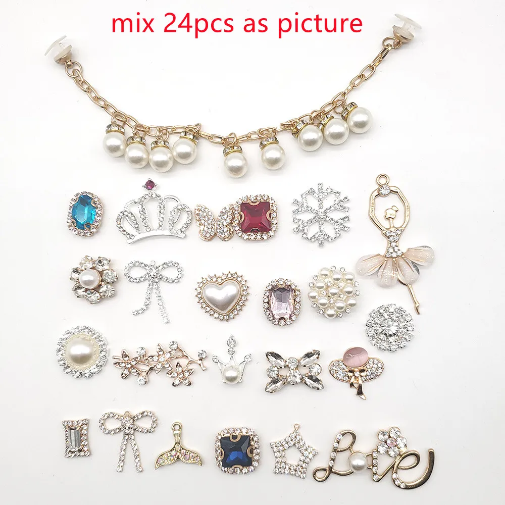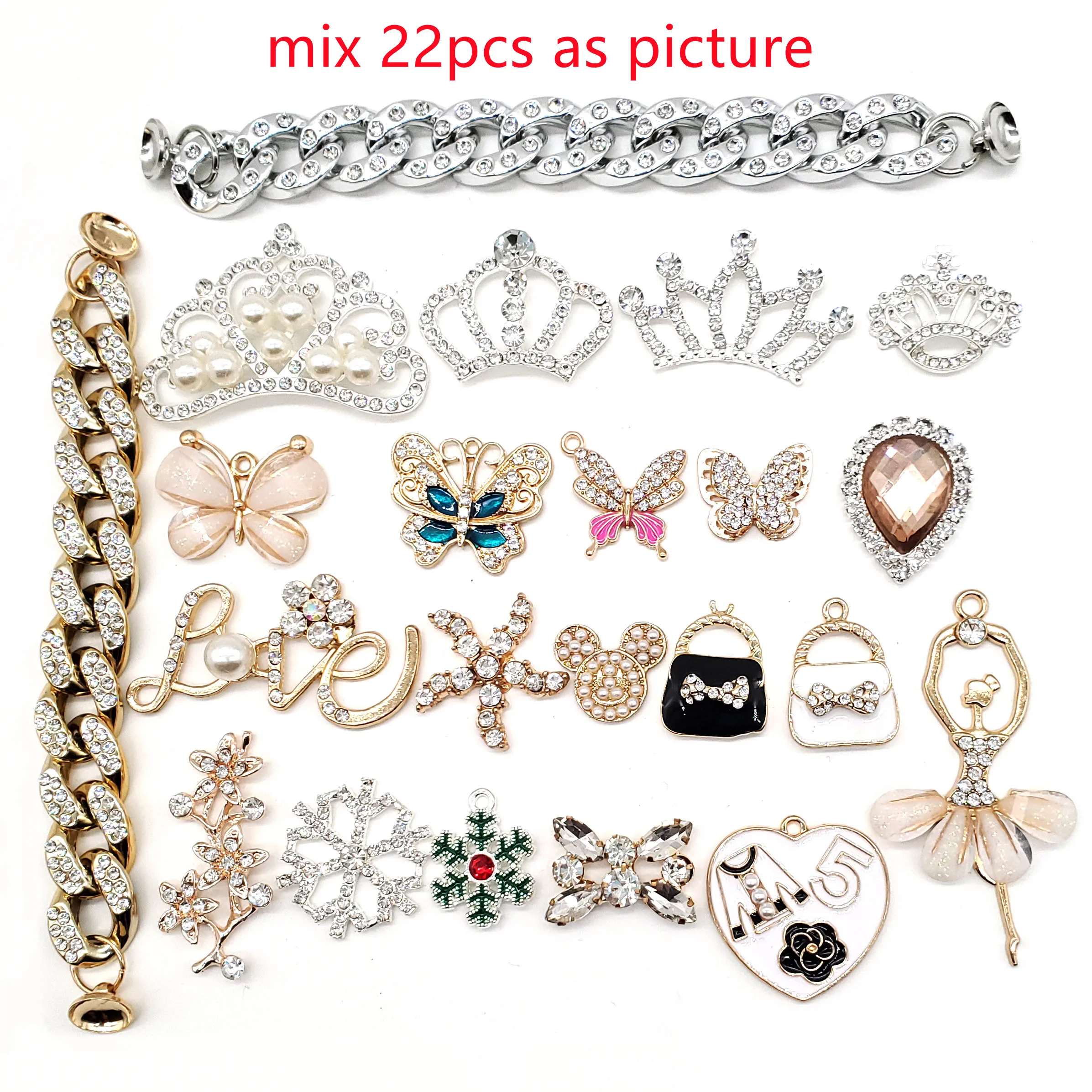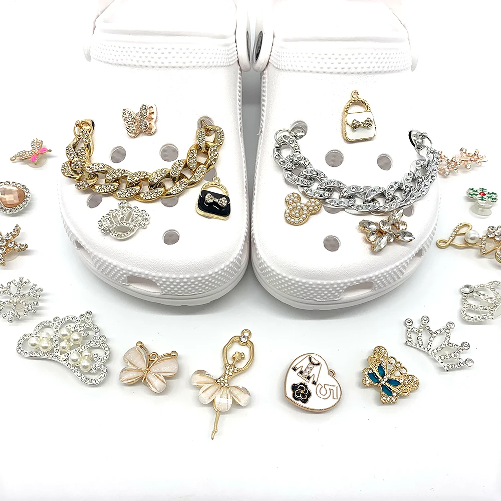 Модные Цепочки Стразы JIBZ Croc, шармы, аксессуары сделай сам, металлические цветы, корона, садовые сабо, украшения для обуви, подарки для девочек