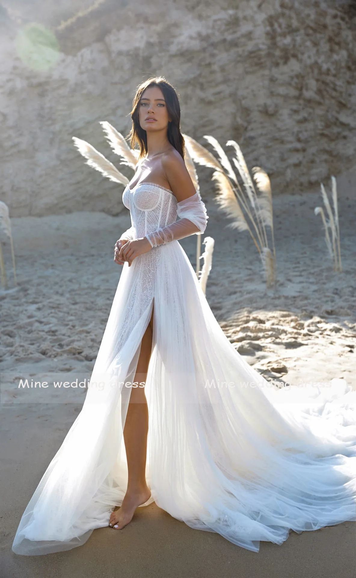 Простой Прозрачный лиф с разрезом, 34 рукава, на молнии, Тюлевое свадебное платье, свадебные платья, Vestido De Noiva, изготовление на заказ