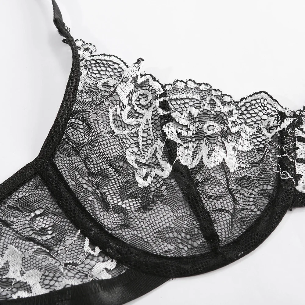 Чувственное женское нижнее белье, бюстгальтер, комплект, пуш-ап, кружевной бюстгальтер, необычная вышивка, экзотическое нижнее белье, комплект из 2 предметов, секретное эротическое белье