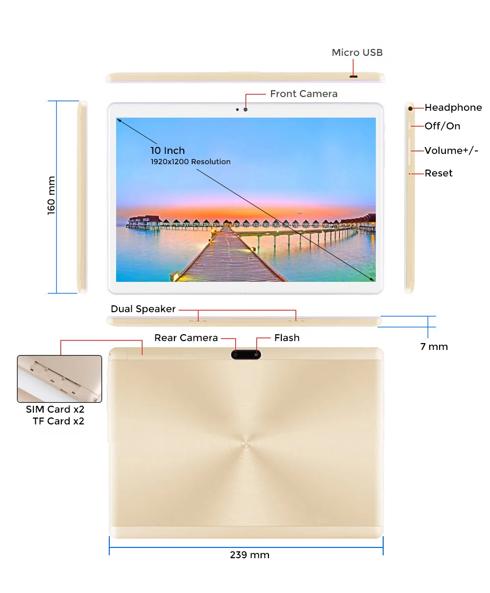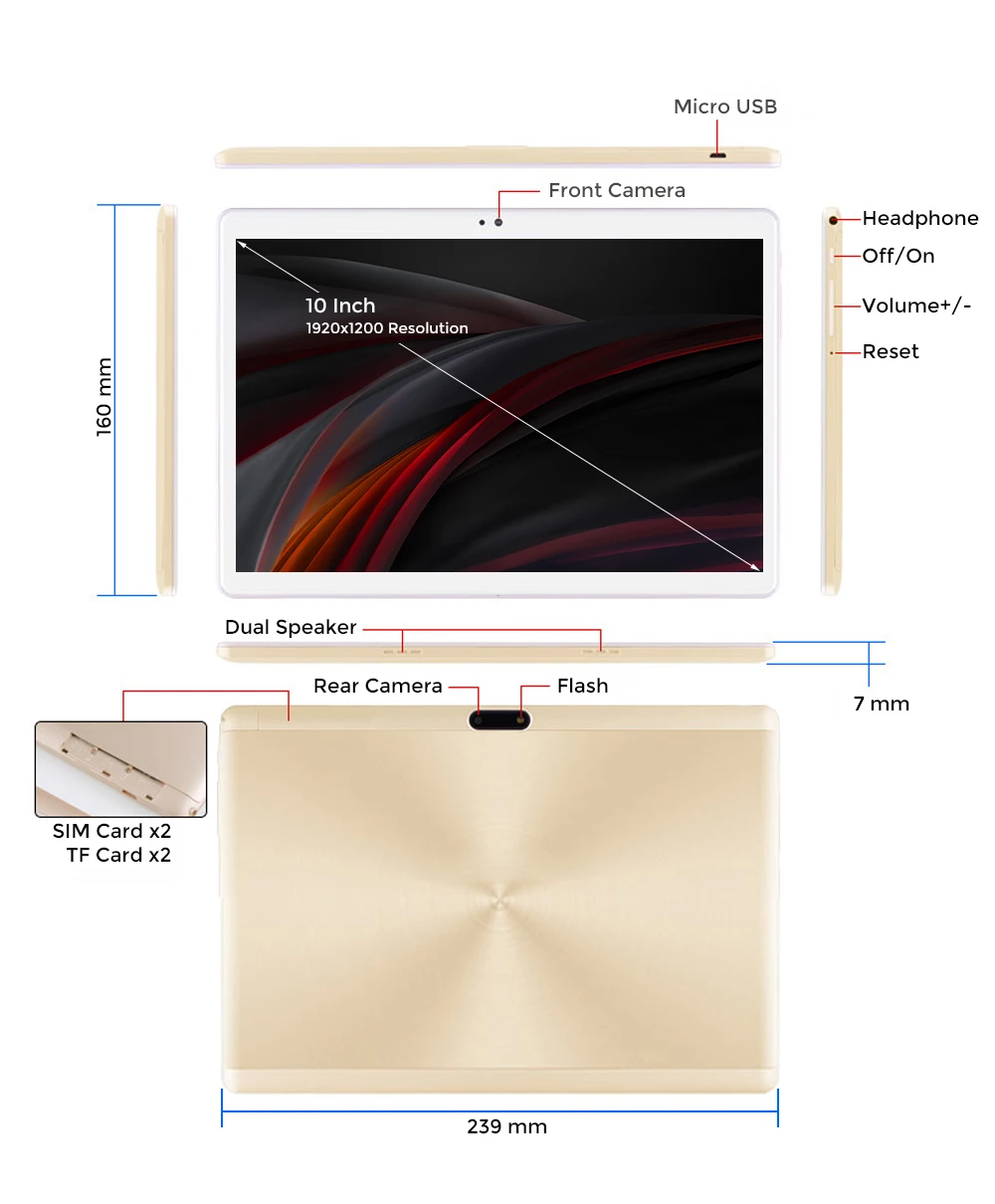 10 дюймов Full HD IPS Экран с 1920x120 0 Разрешение (3G версия 1280x800) и 178 градусов угол обзора. Принесите прозрачный изысканный визуальный ценим.