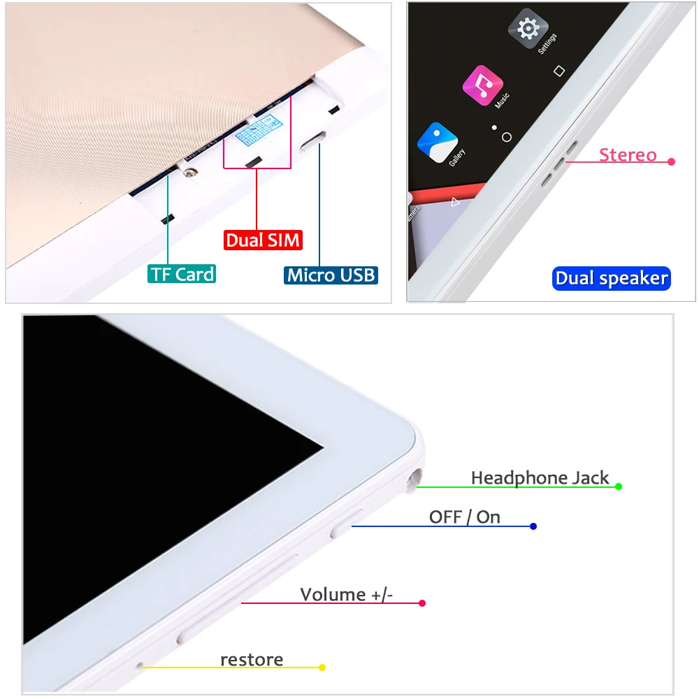 10-дюймовый планшетный ПК с системой андроида и 9,0, четыре ядра, 4 Гб Оперативная память 1920x1200 IPS HD 4 аппарат не привязан к оператору сотовой связи телефонный звонок Dual 2,4 г 5G Wi-Fi 10,1 для детей