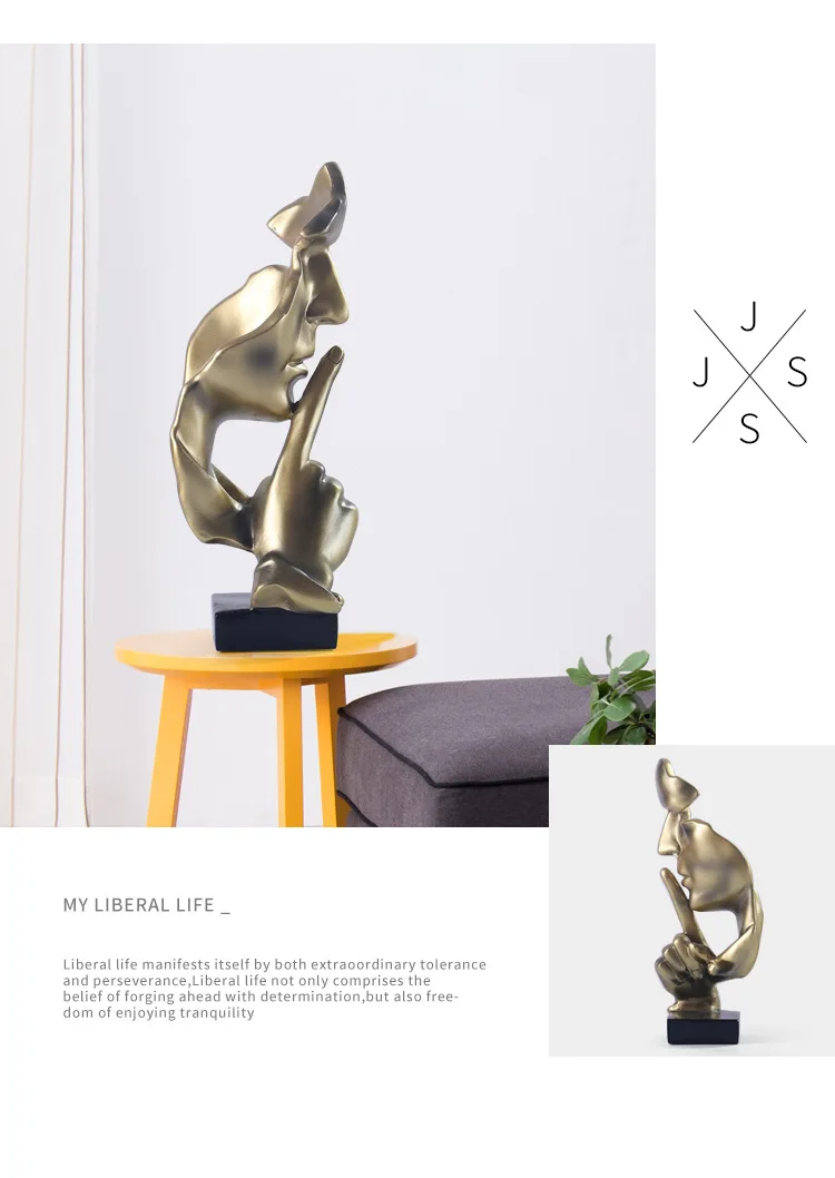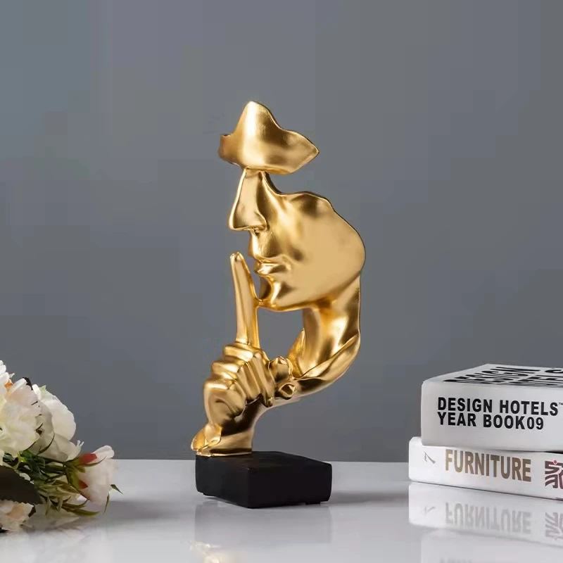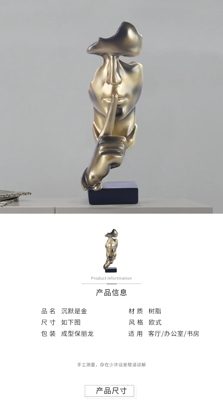 Статуя большого размера из абстрактной смолы, тишина-это золотое ук...