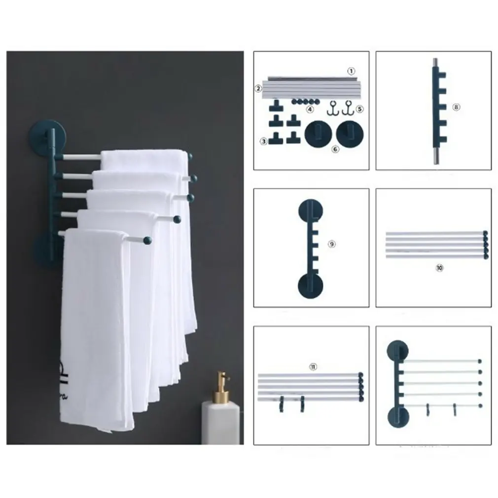 3. Вращение на 180 °: вешалка для полотенец может вращаться на 180 ° горизонтально, что достаточно для удовлетворения потребностей одежды и полотенец.