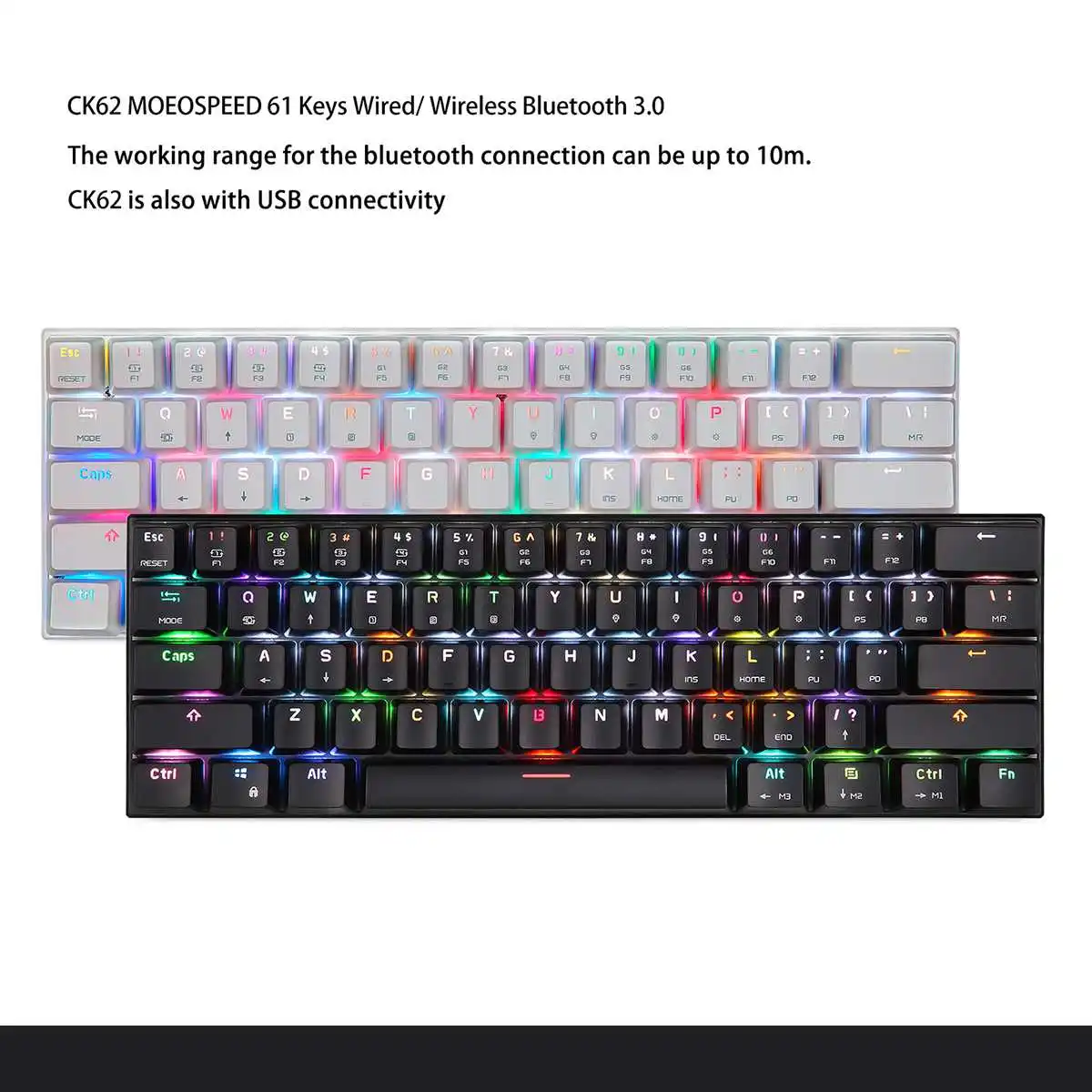 Motospeed CK62 bluetooth USB проводной двухрежимный переключатель Outemu RGB Механическая игровая клавиатура черный синий переключатель