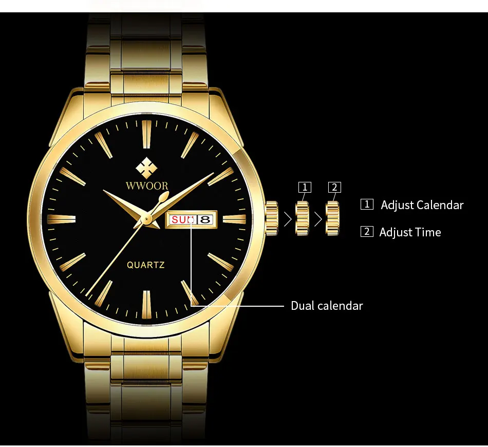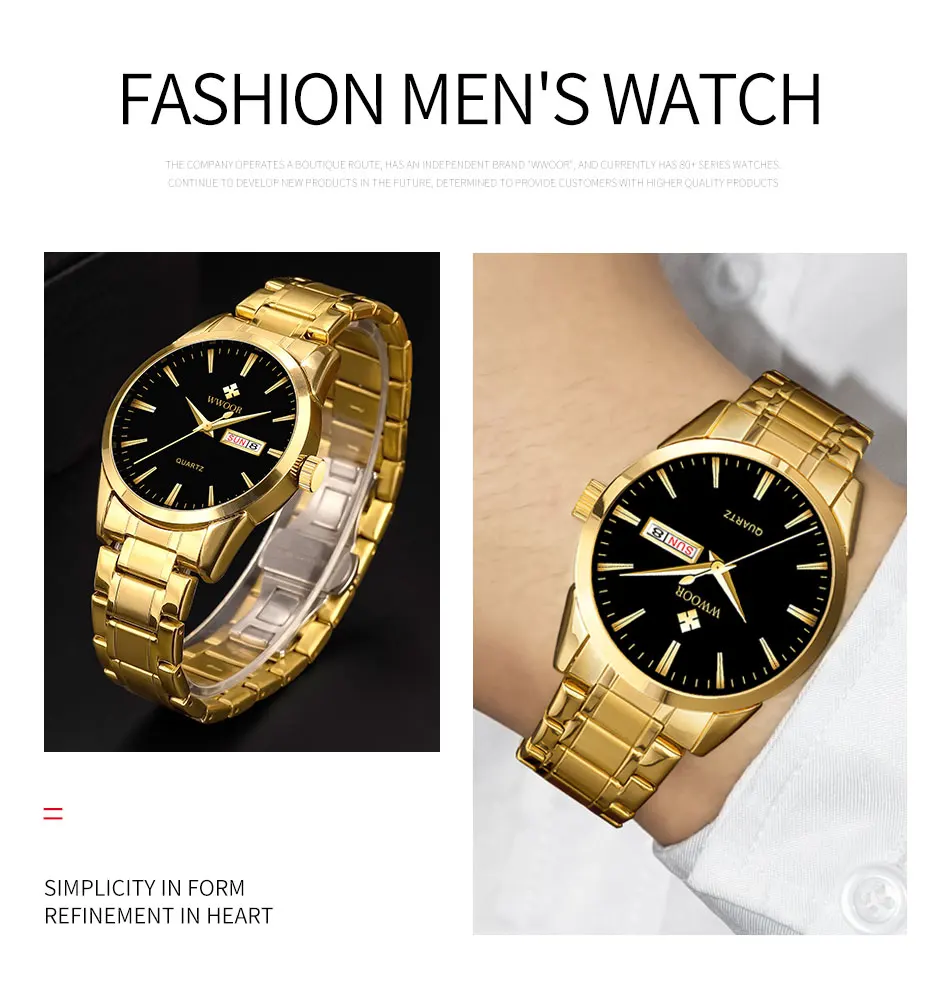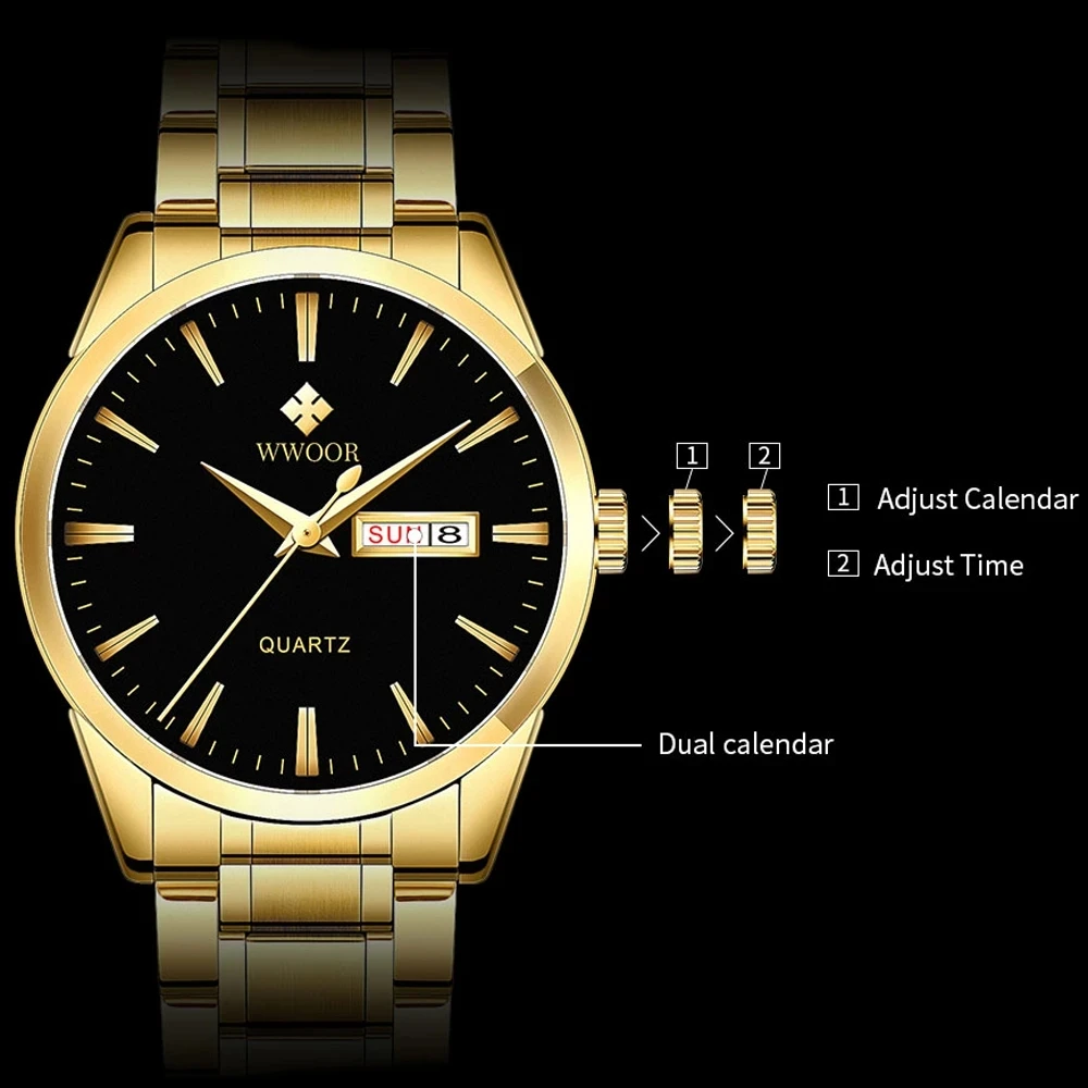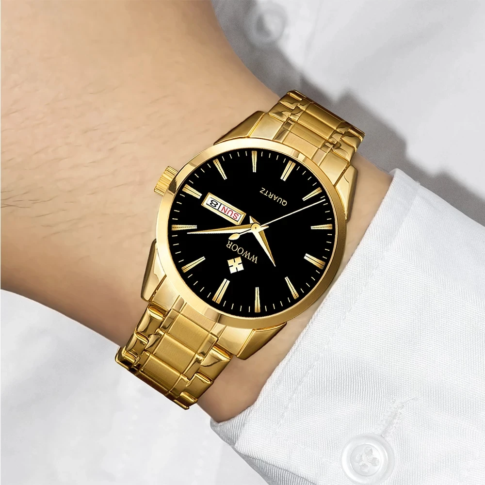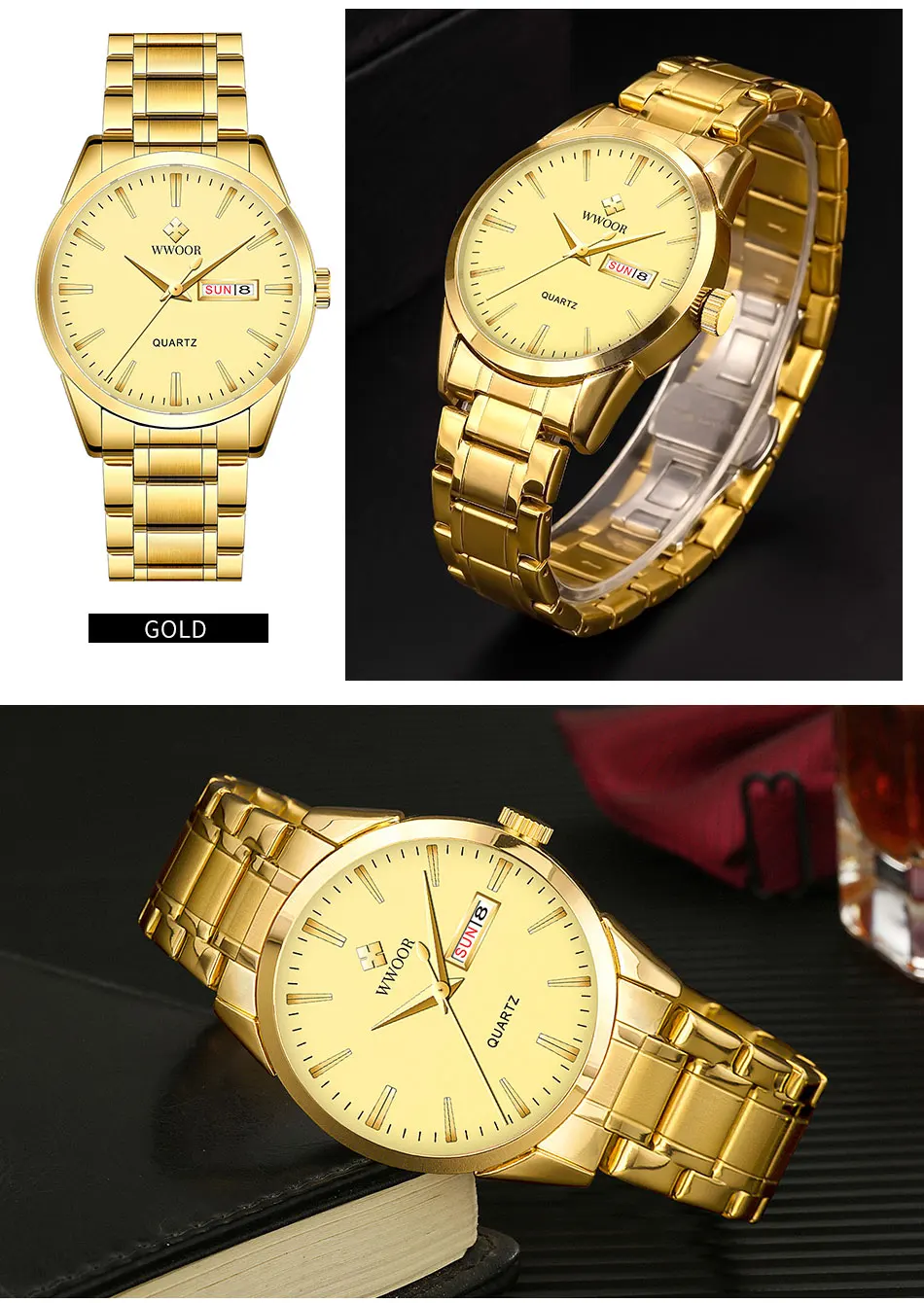 WWOOR 2021 новые кварцевые мужские часы, роскошные полностью золоты...